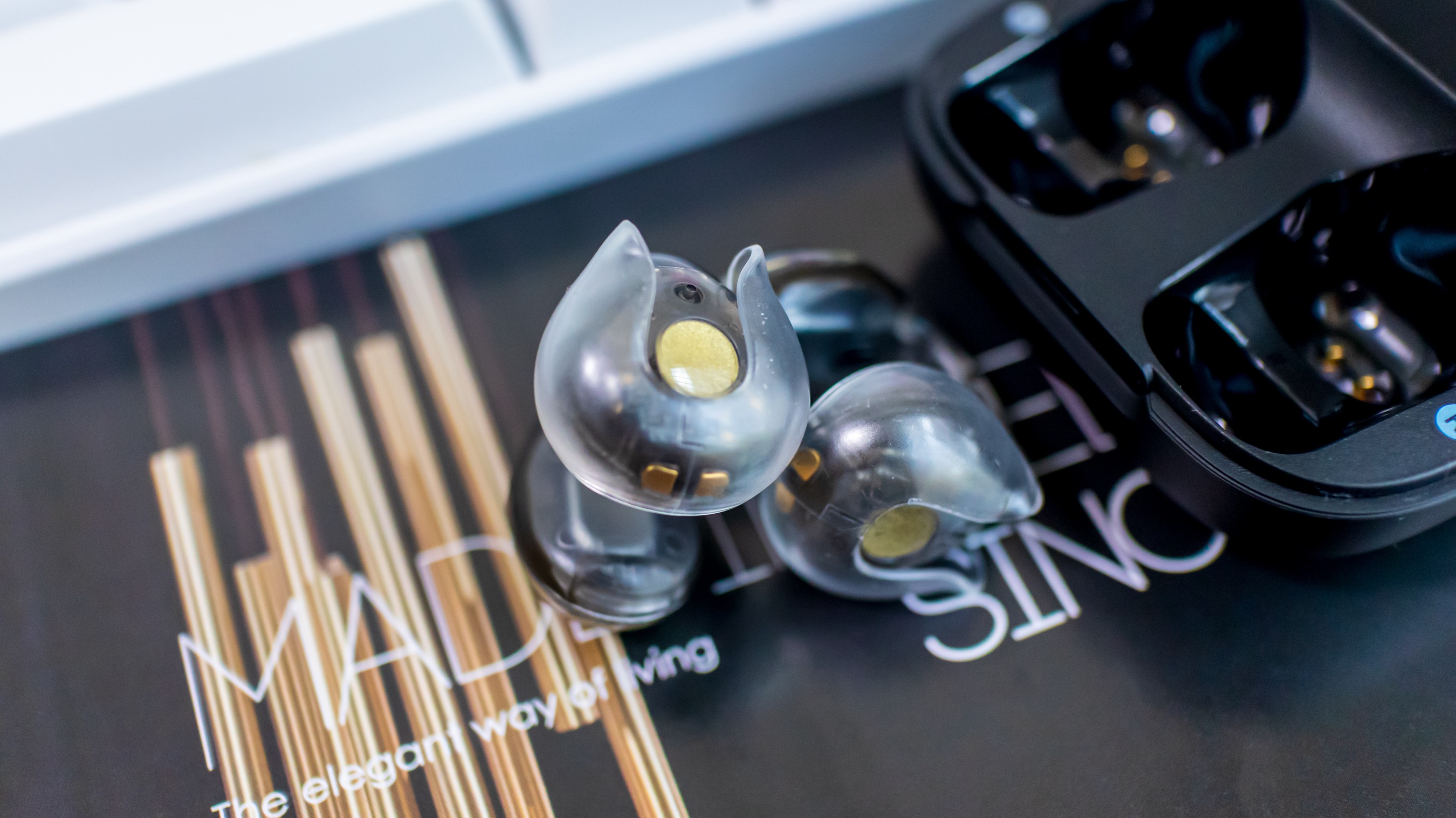 耳机为主流的耳夹式造型,外壳为半透明材质,能瞥见内部精密元器件,非常的酷,很有科技范。采用人体工学结构设计,基于全球10000+人耳佩戴数据模型打造,由于单耳仅重5.7g,佩戴的时候几乎感觉不到重量。