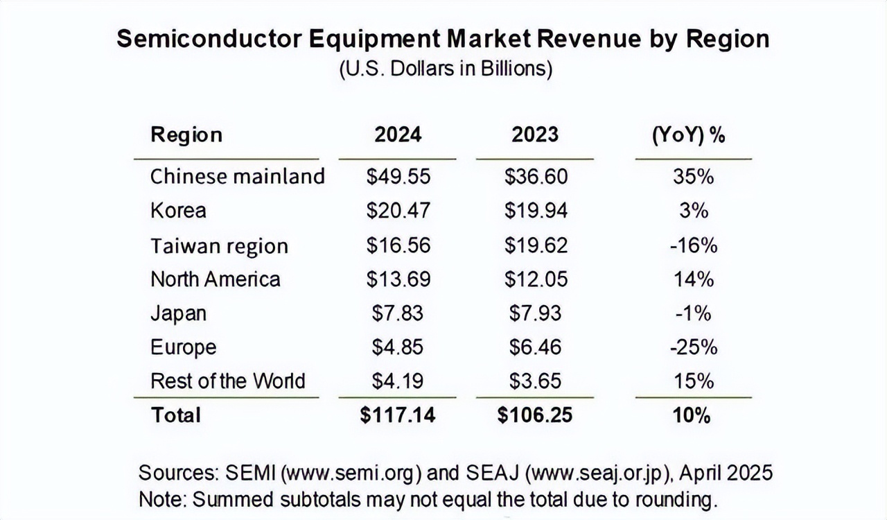 再看美国本土企业,应用材料公司2024财报,中国大陆第四季度销售额降28%,业务开展大打折扣。2025上半年泛林科技,中国营收占35%,国际第一大客户。可禁令不许交付先进设备,旧库存和三星、SK海力士在华合资厂合作还能续命,但整体营收曲线向下弯。