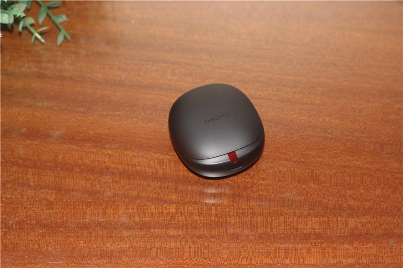 1MORE Aero的充电仓采用ABS材质,扁平圆润的设计,小巧精致,拿在手里非常顺滑舒服。另外开盖处有明显的凹槽,单手即可打开。