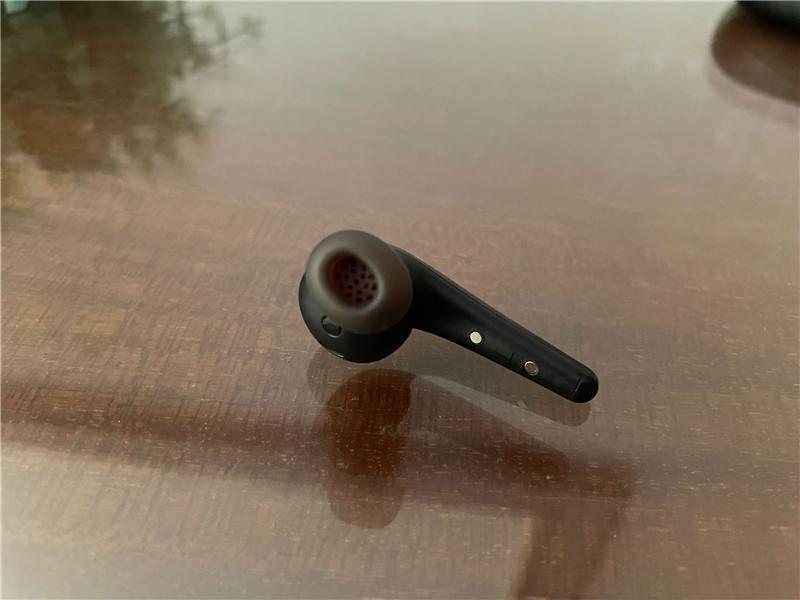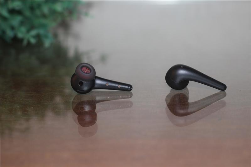 1MORE Aero耳机单元同样经过圆滑处理,轻盈小巧,做工相当精致,佩戴舒适牢固。触控区域位于耳柄的中部,双击播放/暂停,来电时双击则可以接听/挂断,三击启动语音助手等操控,触控反应很灵敏,几乎无延迟,只要触控点击到位,耳机均能作出正确的回应。