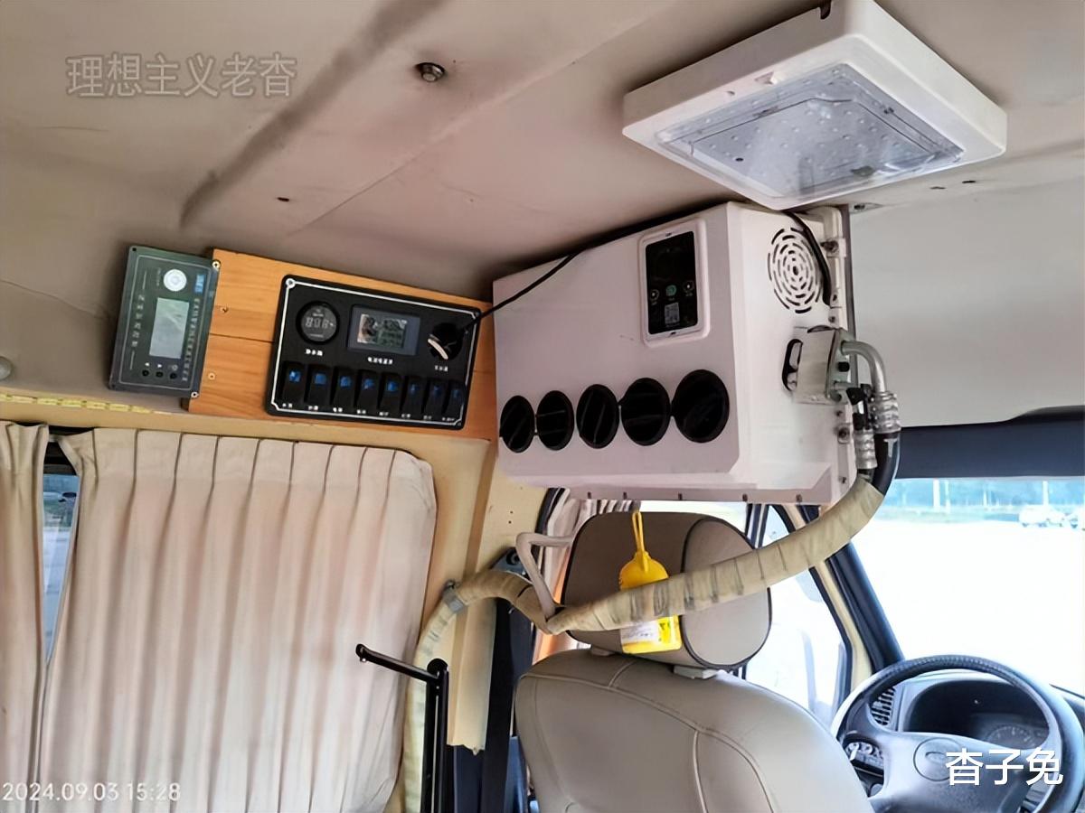 主驾座椅头顶有电控系统、驻车空调和氛围方灯,一切都是为长途旅居而备。