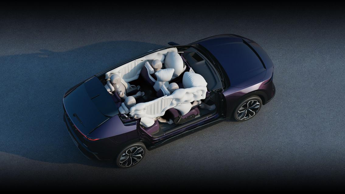 马自达EZ-60的安全表现也很扎实,首先是该车的车身采用了7横5纵的笼式车身设计,并且用料上高强钢占比达到了86.5%,同时加入了四重防护前防撞梁、双重防护车顶横梁、双重防护门防撞梁、三重防护B柱、三重防护门槛梁配合上该车的A柱采用了五层复合抗压设计,通过1500MPa热成型件叠加高强度SNS复合材料,让车身的抗压能力较双层结构提升约136%,进一步提升了车身的抗撞击能力。同时该车全系标配了9个安全气囊,气囊总容积370L,保护面积达26500cm²,侧气帘长度超2000mm,进而在车辆发生强烈撞击后能够更好的保护车内乘客安全。