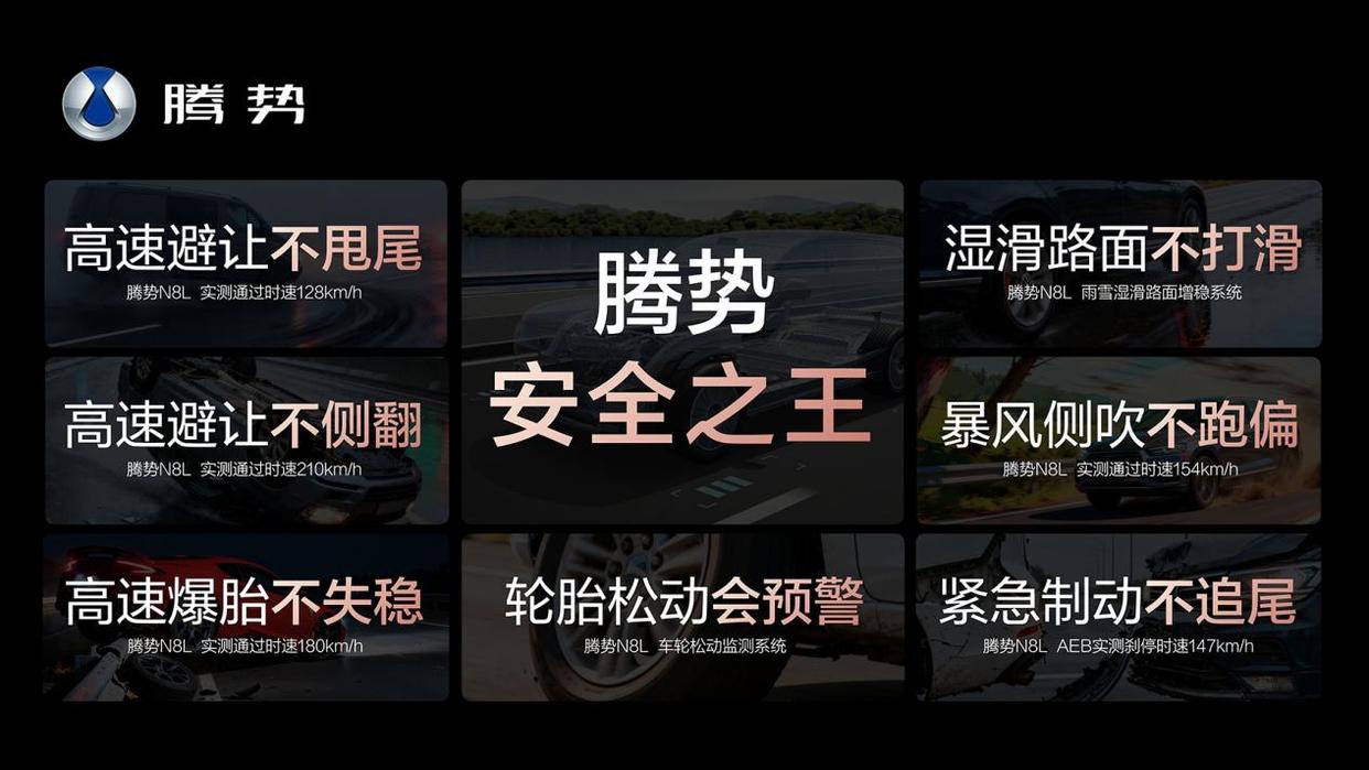 安全是家庭出行的底线,腾势N8L车身关键区域采用2000MPa坦克级热成型钢,搭配混动CTB技术,即便遭遇25吨大货车侧翻压顶也能稳稳抗住。依托易三方技术,它还实现了多项远超同级的安全表现:128km/h高速避让不甩尾、210km/h高速避让不侧翻、180km/h高速爆胎不失稳,甚至154km/h暴风侧吹都不跑偏,再加上147km/h AEB自动紧急制动、轮胎松动预警、雨雪内八增稳模式,为家庭出行增添了一份让人放心的保障。
