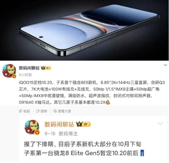 朋友们,最近这手机圈可真是热闹得不行啊,各家都在发新机,看得人眼花缭乱。但要说最近哪台手机真的把“性能旗舰”这四个字刻进了骨子里,甚至有点“卷疯了”的架势,那恐怕得数iQOO即将在10月20日晚上7点正式亮相的iQOO 15了。光是看目前曝光的参数,就觉得这台手机简直是把“堆料狂魔”写在了脸上。那它到底值不值得咱们掏腰包呢?今天咱们就来好好聊一聊。