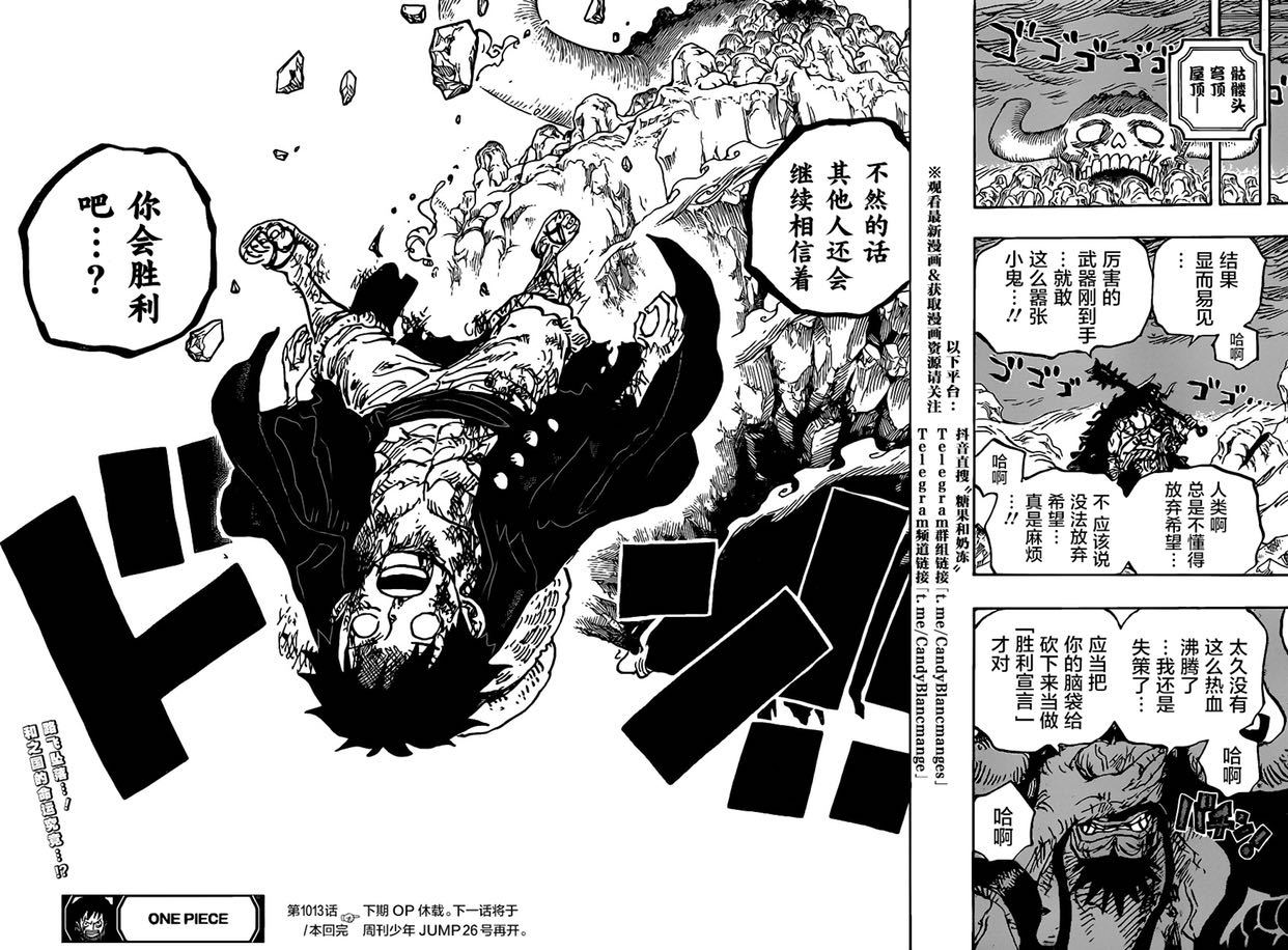 以上就是《海贼王》1013话暂时的情报内容,从情报中来看,领悟了霸王色缠绕能力的路飞依旧不是凯多的对手,而且从凯多的口气来看,似乎他赢得还非常轻松。而这里就有一个问题了,连路飞都失败了,那谁还能击败凯多呢?难道又是围殴?