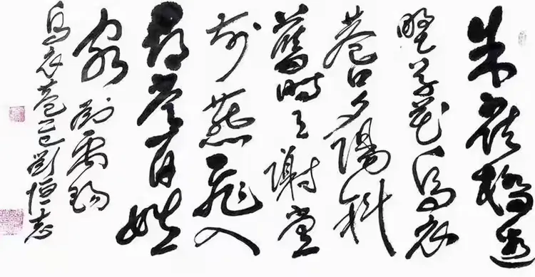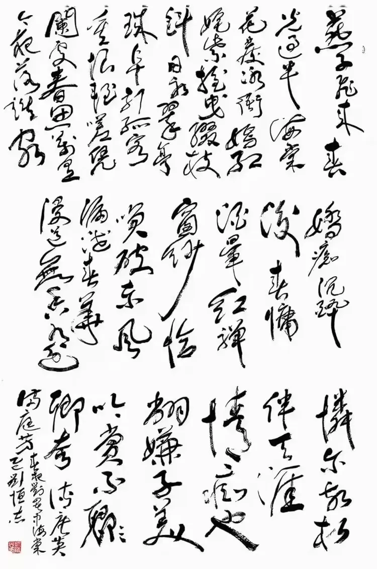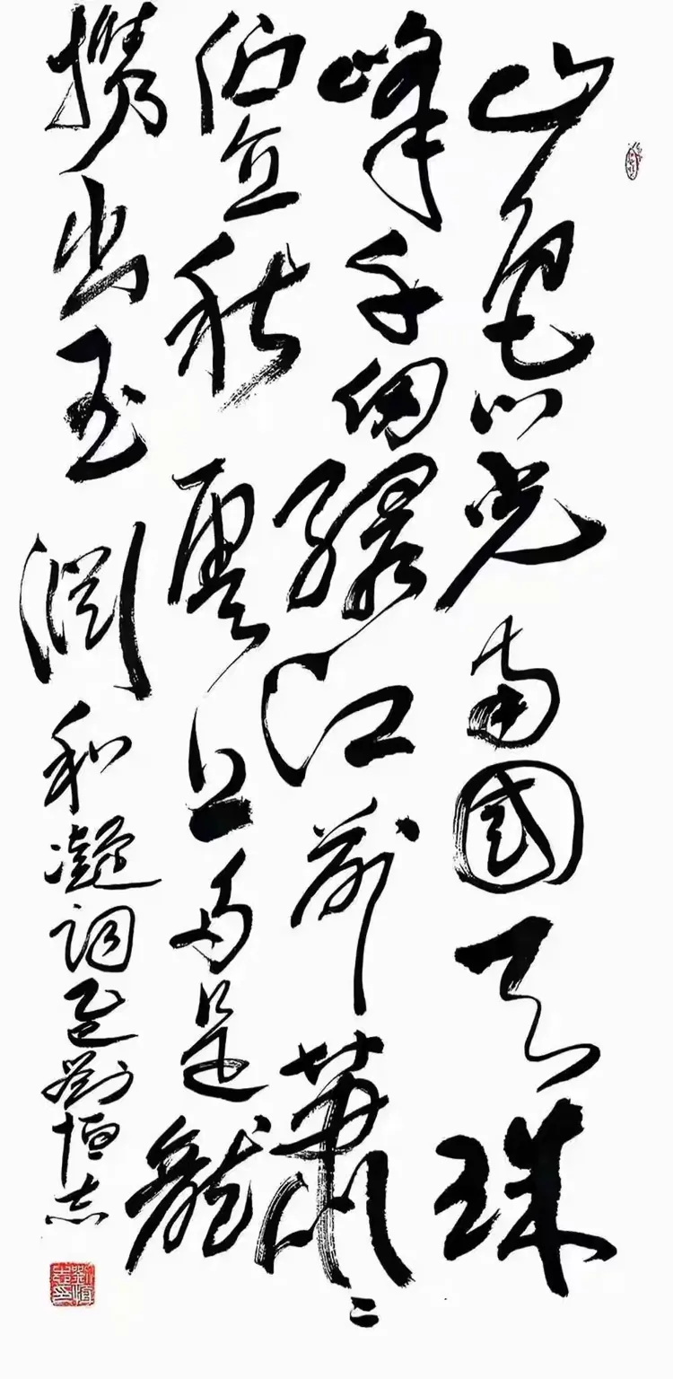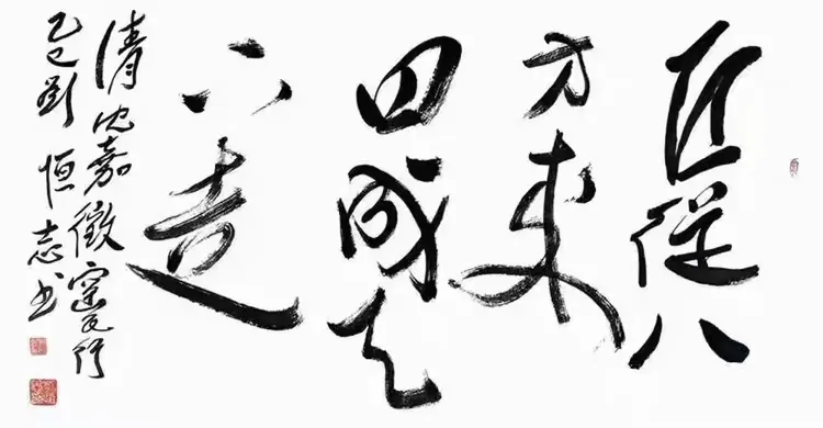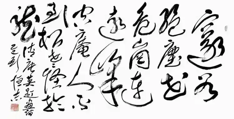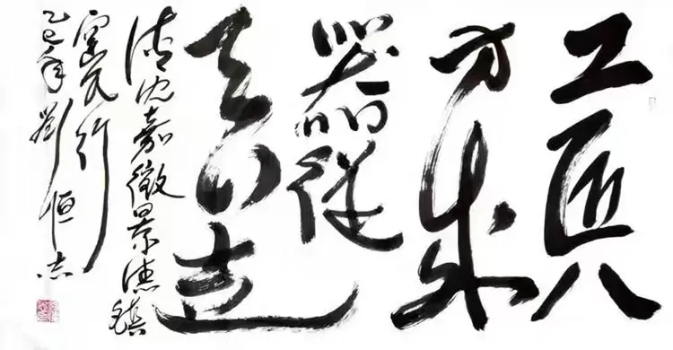 刘恒志将山河的刚柔、风烟的聚散,都揉进了笔锋里。落墨时,腕间的力是山的力,笔端的韵是水的韵,铺展开来,便是一整个泼洒的意气:没有雕琢的痕迹,只有笔墨与心性撞出来的惊雷,在纸上隆隆作响。指尖仿佛还沾着墨色的温度——那是笔底奔雷余留的震感,是草书最动人的模样:以笔为刃,以墨为魂,劈出满纸的鲜活与意气。