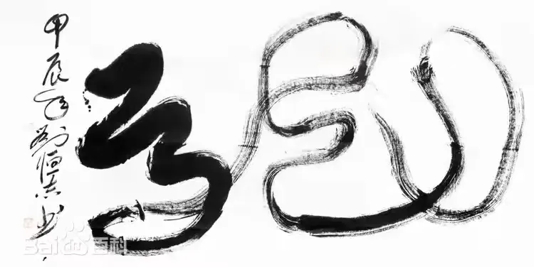 那墨色是活的——重处如蟒腹沉厚,一笔落纸便压得宣纸生纹;轻处似蛇信游丝,拖曳间带起半缕墨烟。线条盘绕时,藏着草书的意:不是规规矩矩画蛇形,是将蛇的逶迤、蛇的灵动,揉进提按转折里。起笔如蛇首探草,收锋若尾尖扫叶,连那墨色的飞白,都像蛇鳞擦过石面的细碎声响。