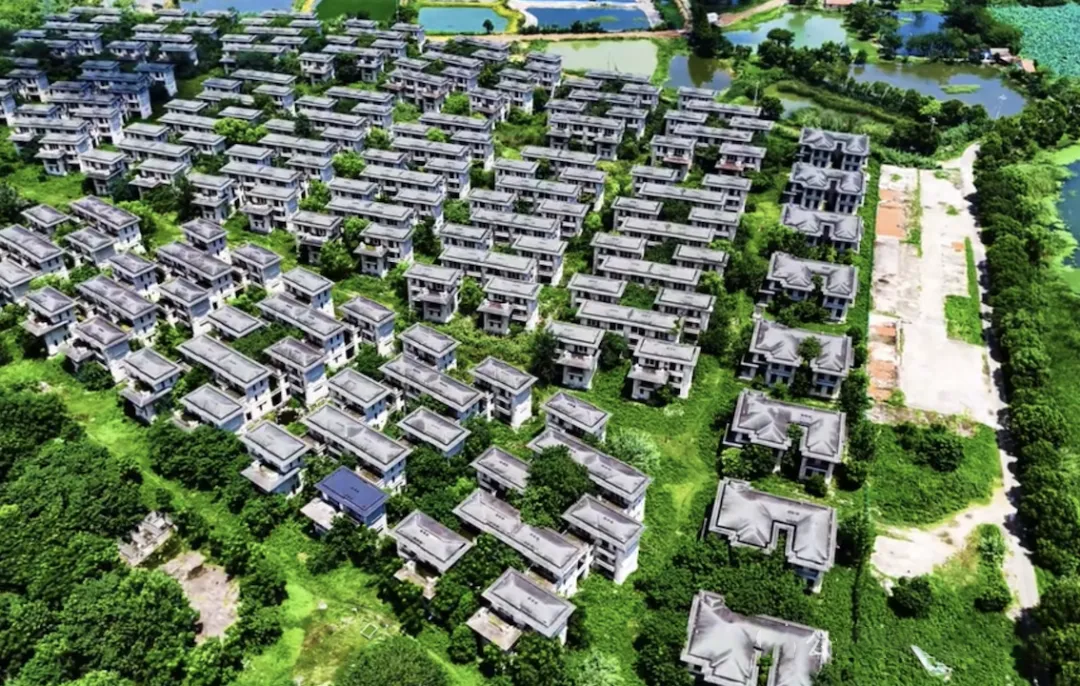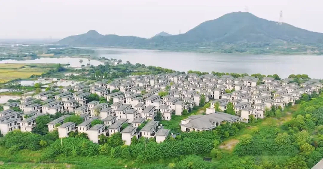 你见过 “盖完了却没人敢住” 的别墅群吗?在浙江余姚的牟山湖边,就戳着一大片精致的白墙灰瓦别墅 —— 湖景是真的绝,青山绕着碧水,风一吹湖面泛着光,可别墅院子里的野草都快长到窗户高了,小路被遮得严严实实,当地人都叫这儿 “湖边长草的鬼城”。