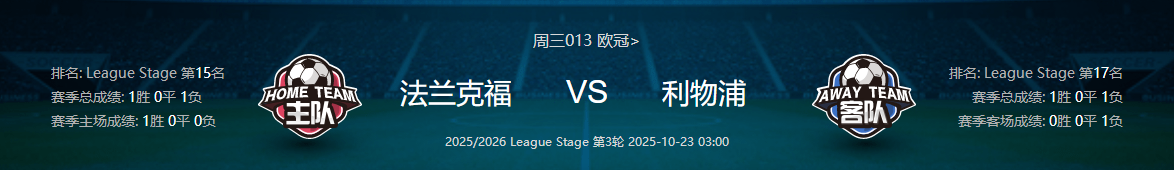 双方近一年没有直接交锋记录,彼此打法和阵容都较为陌生。法兰克福主场进攻能力不俗,但防守端失球偏多,面对利物浦的高压逼抢和快速反击,压力不小。本场比赛利物浦阵容实力和经验占优,虽然近期状态不佳且门将伤缺,但面对防守不稳的法兰克福,仍有较大机会全取三分。