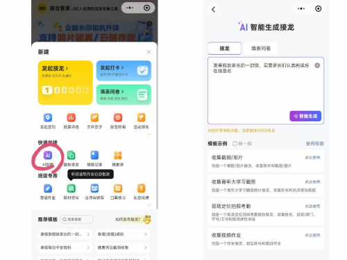 还是在接龙管家里,点击「AI创建」,你把指令告诉AI,例如“我要发寒假致家长的一封信,需要家长们认真阅读后在线签名”,AI就会自动帮你生成一条签名接龙。