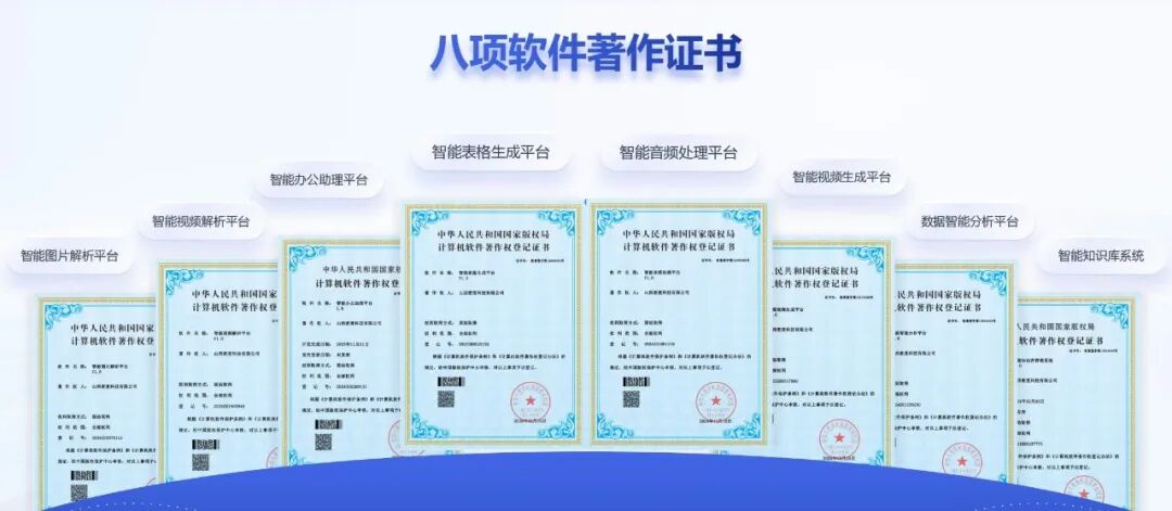 核心优势体现:凭借“技术研发 + 场景创新 + 全流程服务”的核心优势,已获得多项软件著作权。