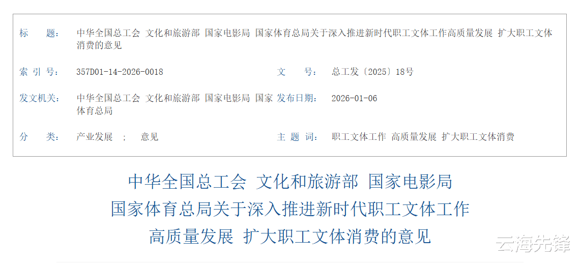 在促进消费方面,将推出面向职工的专属优惠文体产品与服务,涵盖文艺观演、电影观赏、赛事观看、体育健身等领域。支持开发旅游景区年票产品,鼓励发放文旅消费券、电影券,举办主旋律电影展映,支持办好“惠工院线”。