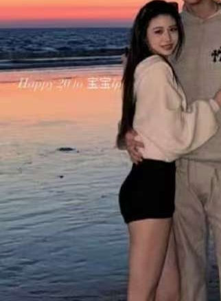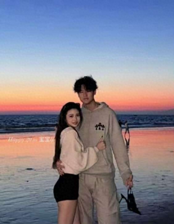 小苹果在社交平台上,晒了一张她在海边和年轻男子甜蜜拥抱的照片。
