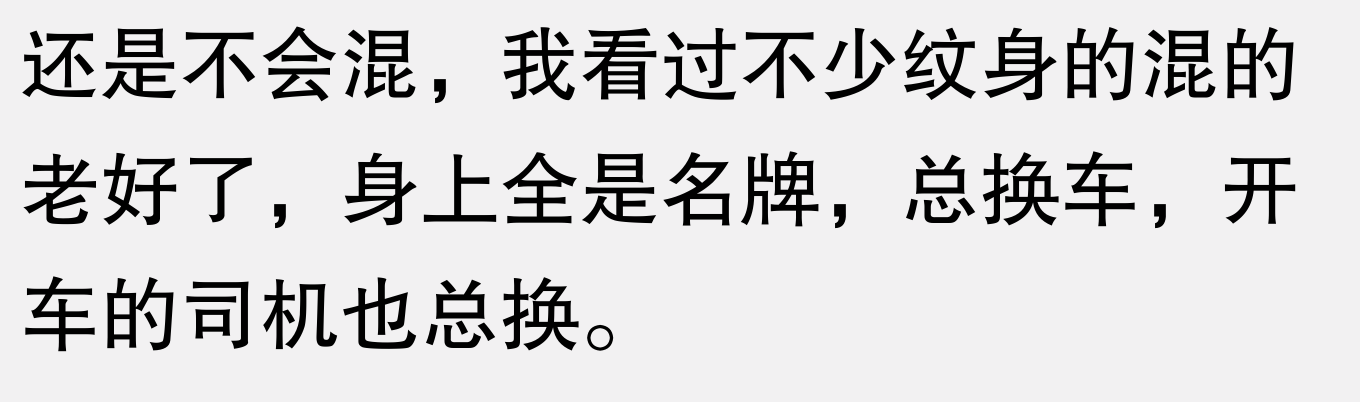 8. 纹身混得开,身上名牌换不停,司机都换不过来。