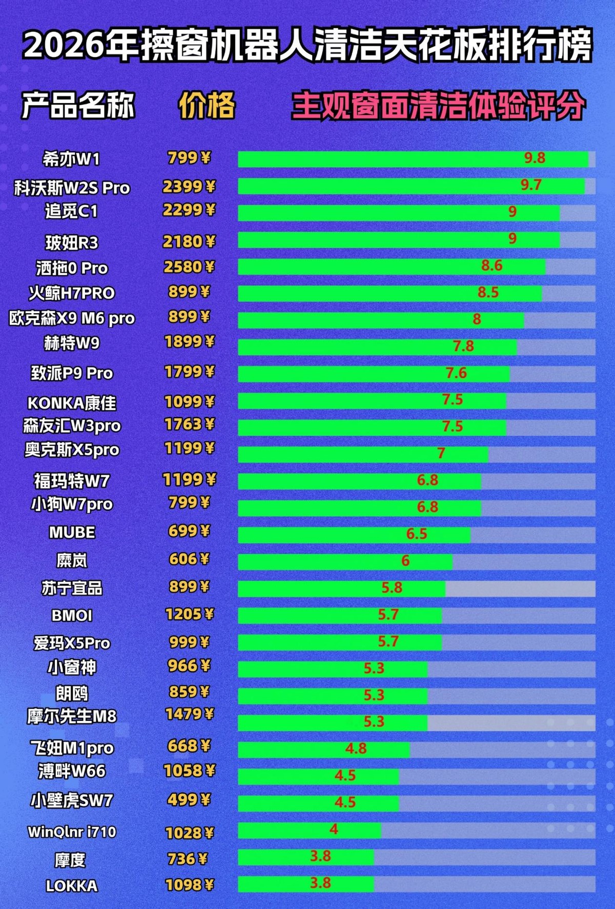 为了帮大家避坑,我自费选了十款热门擦窗机器人,覆盖不同价位和品牌,从防雾效果、高处适配、水渍控制这些核心需求出发做实测。不管你是怕擦窗弄湿家居,还是愁高处玻璃擦不到,都能在这儿找到参考。接下来就把真实体验分享给你,帮你轻松选到能解放双手的擦窗神器!