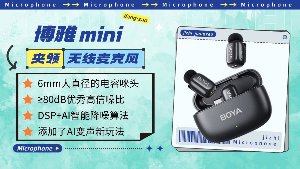 博雅mini以亲民价格满足基础专业收音需求,精准匹配预算较低、看重便携性的创作者,拍生活Vlog、好物分享都能驾驭。还搭载6mm大直径电容咪头与DSP+AI智能降噪算法,≥80dB信噪比表现优秀,室内能有效压制空调声、键盘声等杂音,小风环境下户外杂音过滤效果也不错。