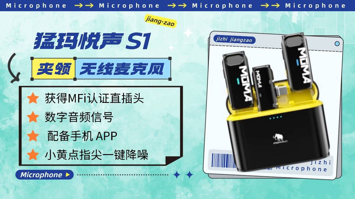 猛玛悦声S1完全满足日常简单语音录制、地摊直播等基础需求,人声清晰度在线,无突兀杂音干扰。而且搭载HearClear降噪算法,压制部分环境杂音,室内安静环境下收音稳定,不受轻微背景音影响(户外风噪抑制能力一般,需搭配防风罩使用);2.4GHz数字跳频技术实现200米内无遮挡稳定传输。