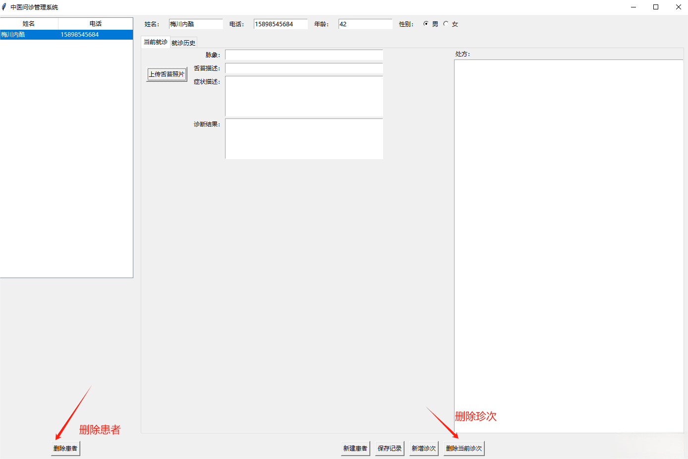 删除功能:新增灵活删除机制,既可单独删除特定诊次记录,也能一键删除整个患者档案,高效清理冗余数据。
