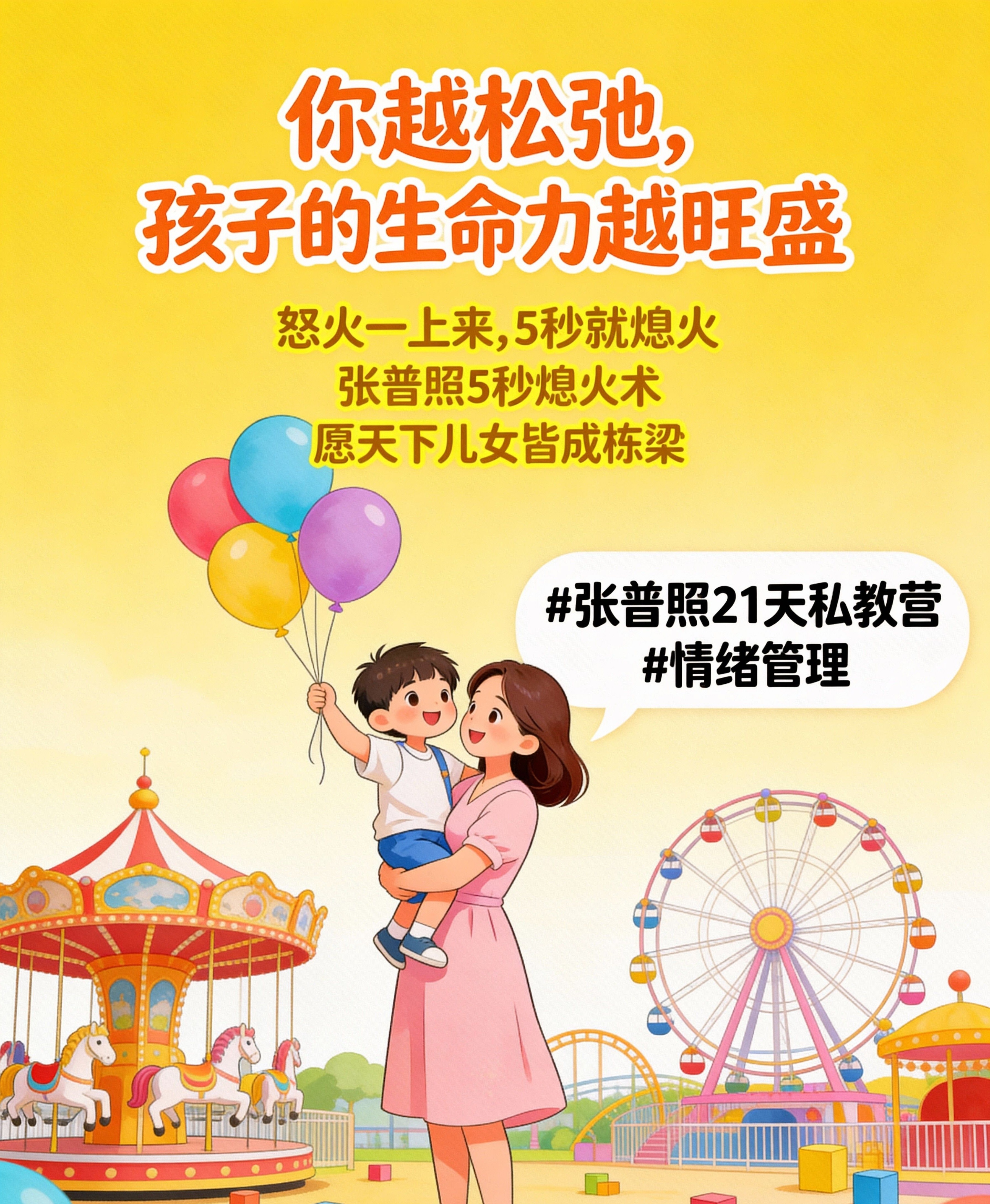 张普照5秒熄火术,就是你从 “家庭情绪风暴眼” 觉醒为 “家庭定海神针” ,从而让孩子生命力真正得以绽放的唯一路径。这条路,就从你决心在下次情绪上头时,优先练习那救赎的5秒开始。