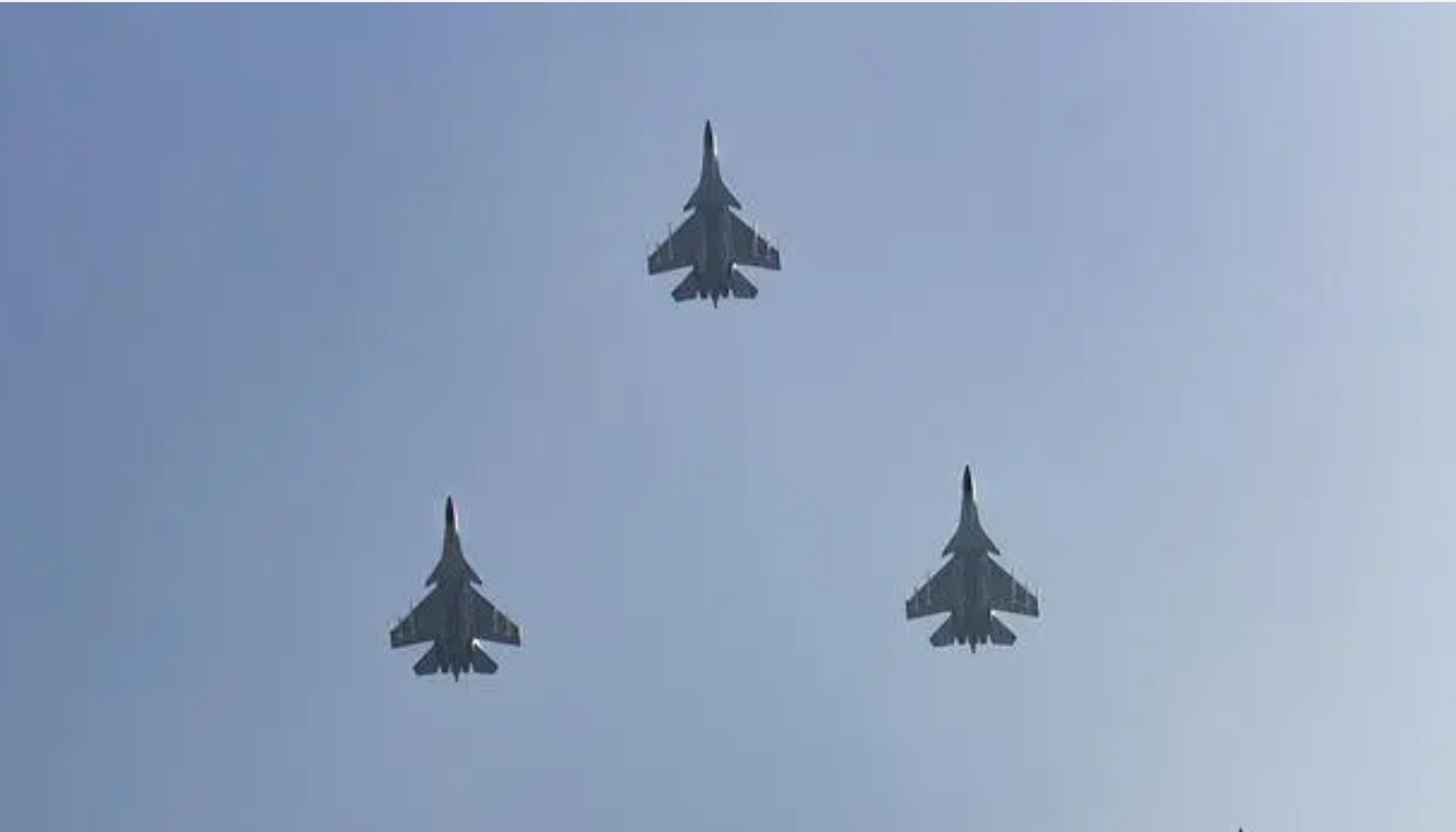 从中国军方发布的视频截图中,那张12架歼-15“飞鲨”舰载战斗机飞跃双航母上空的图片,根据外观上的细微的差异,网友是可以分出两种不同型号的舰载战斗机。