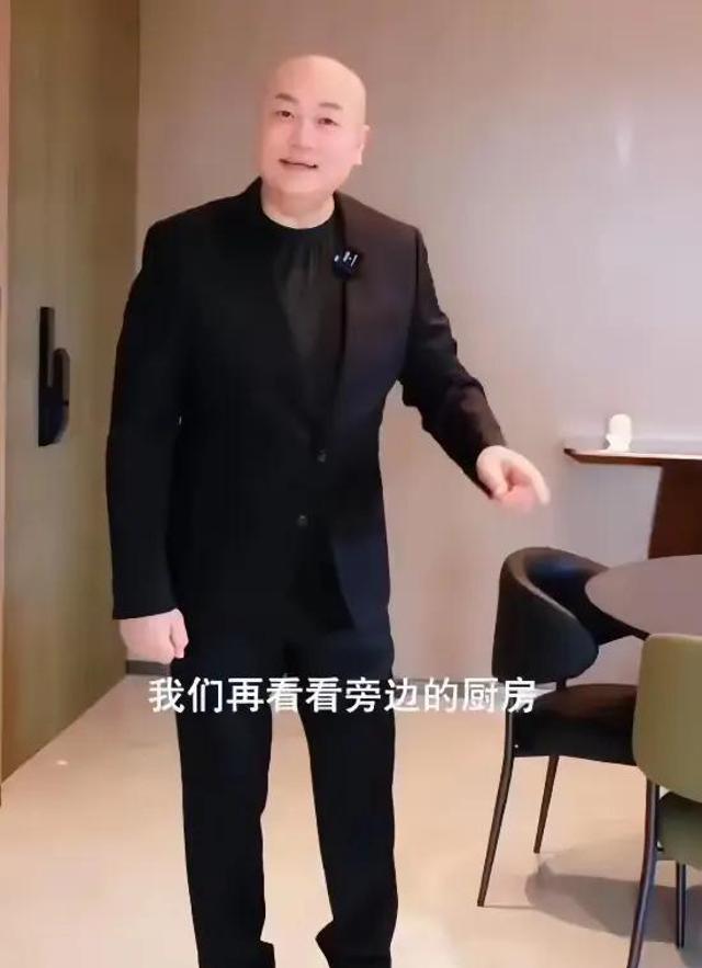 视频中,唐僧一身黑色西装,标志性光头,戴着一副金边眼镜,侃侃而谈要售卖的房子。
