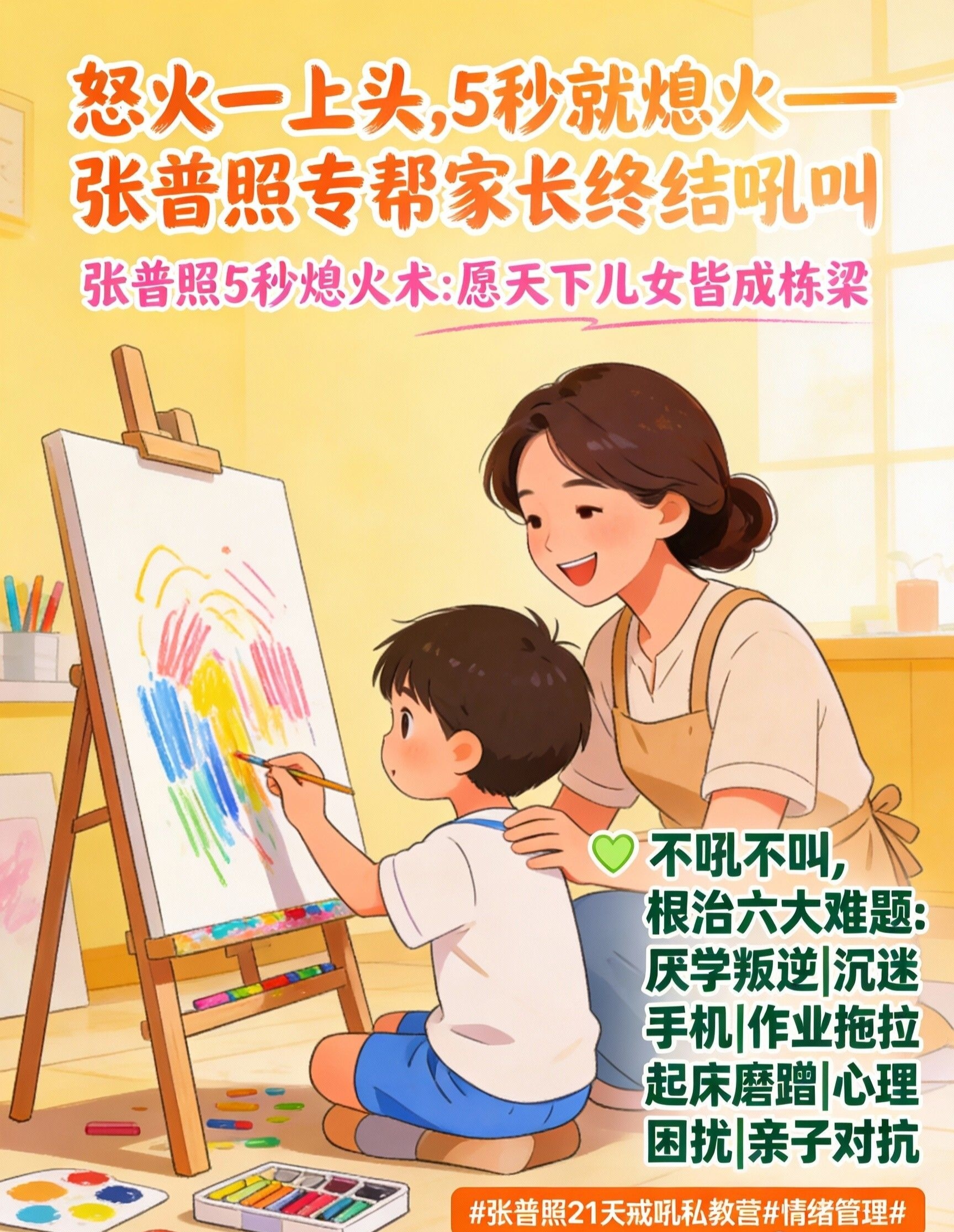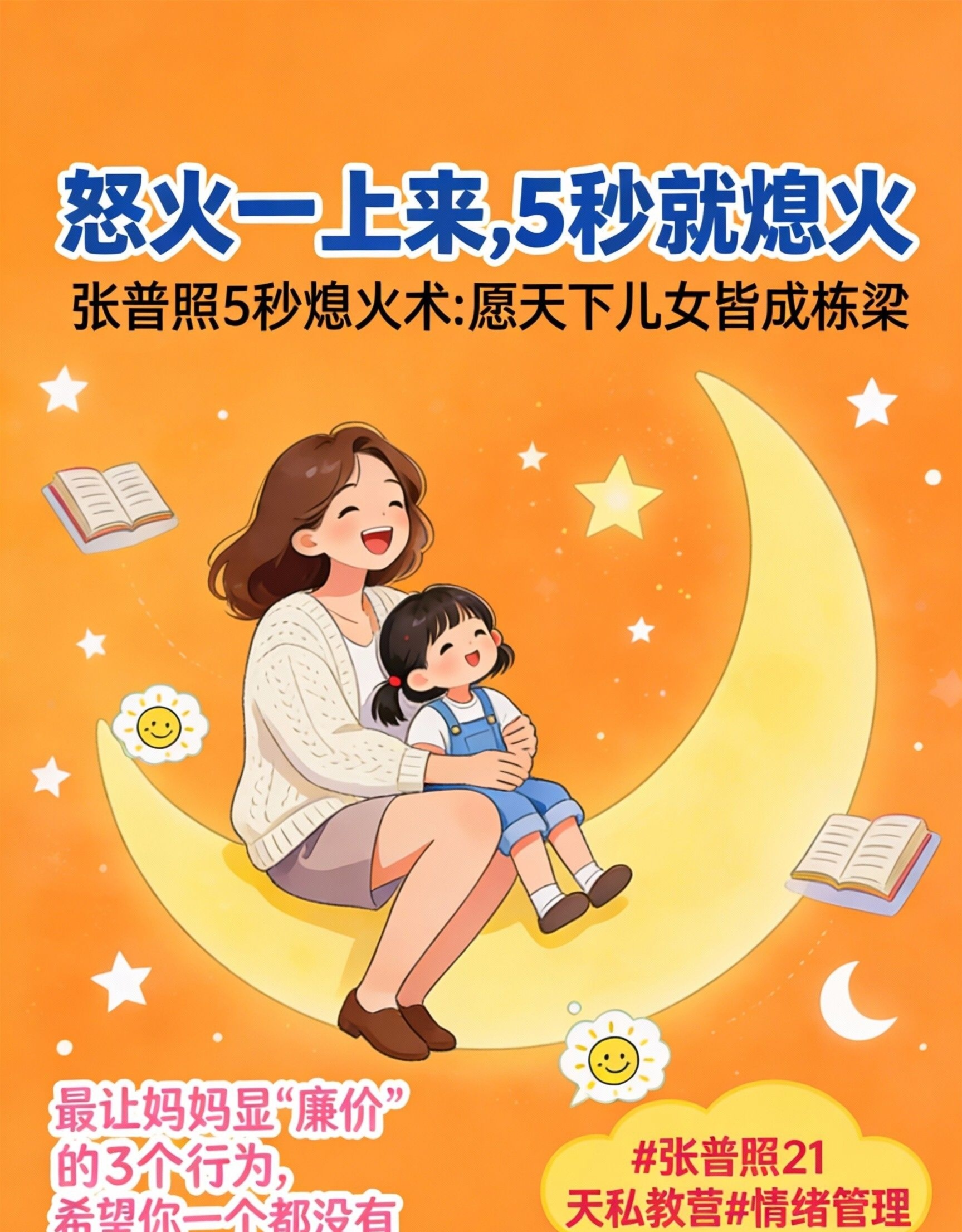 张普照5秒熄火术,就是让你获得这种“静定生威”状态的核心心法。 在你快要被孩子的行为激怒,准备用“廉价”的吼叫或妥协去应对的 关键时刻,给你一次 5秒的“能量转换”。