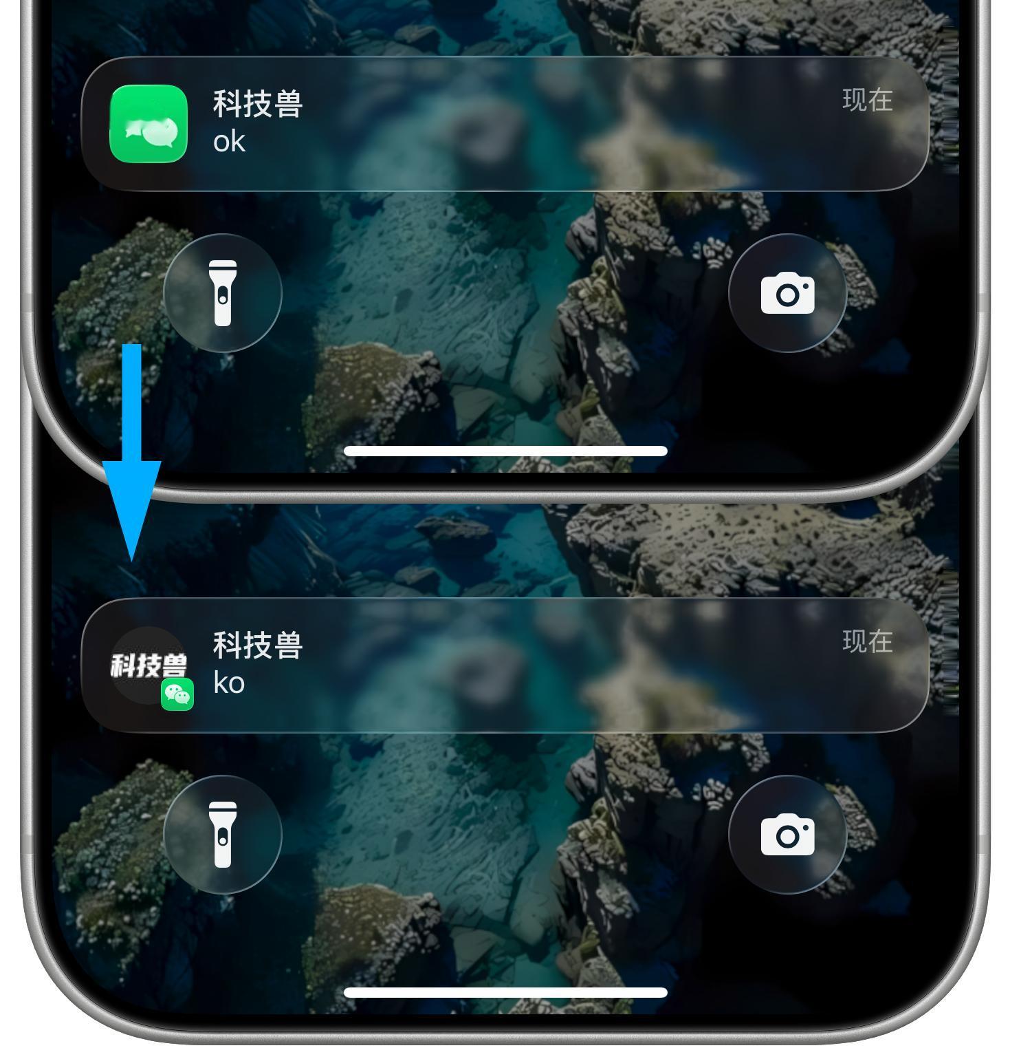 但这个功能目前还在小范围测试,因此大部分用户的消息通知依然只显示微信图标。
