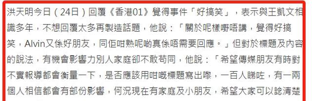 对于绯闻,洪天明很快就回应了媒体。