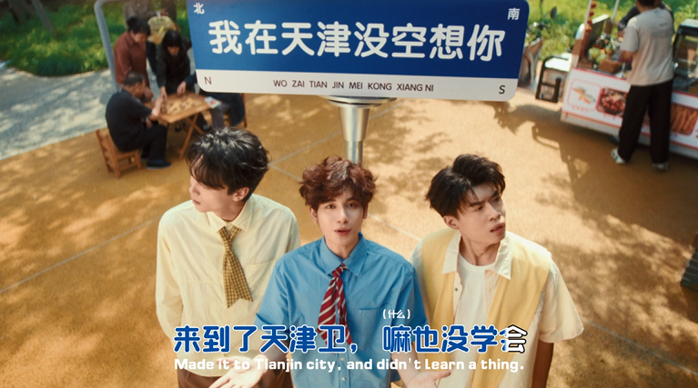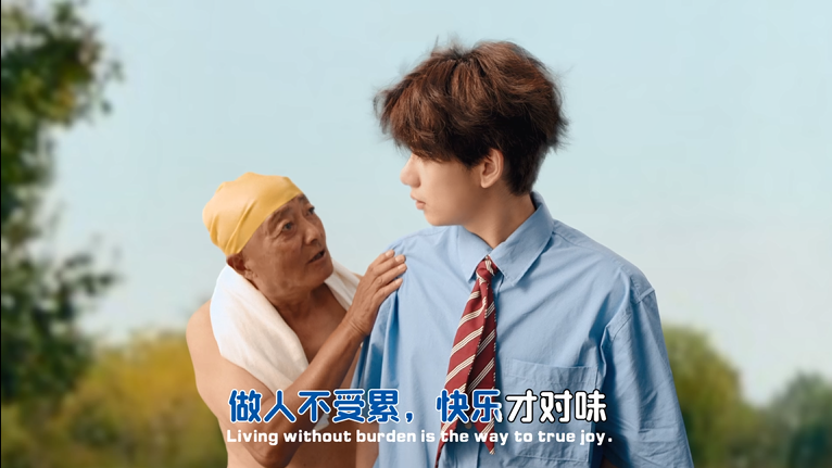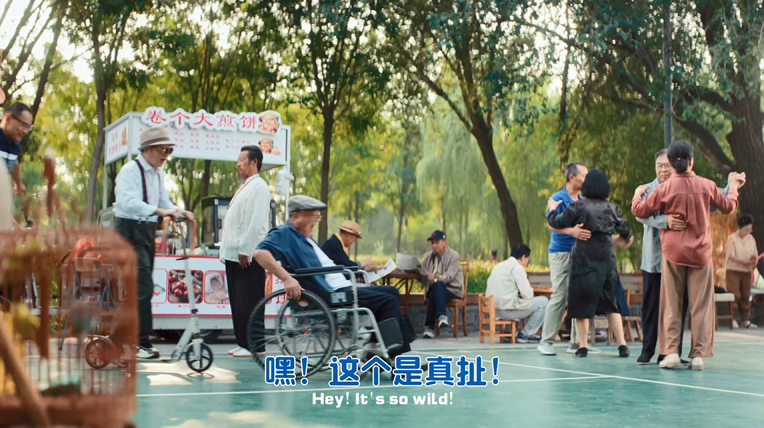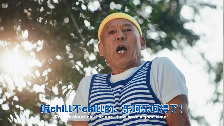 紧接着,公园里的天津大爷玩单杠、唠家常,一句“嘛chill不chill的,乐呵乐呵得了”,既化解了当代人的“chill 焦虑”,又契合了天津人“乐观豁达”的性格特质。看完这支片子,要被天津大爷和胡先煦带“乐呵”了!