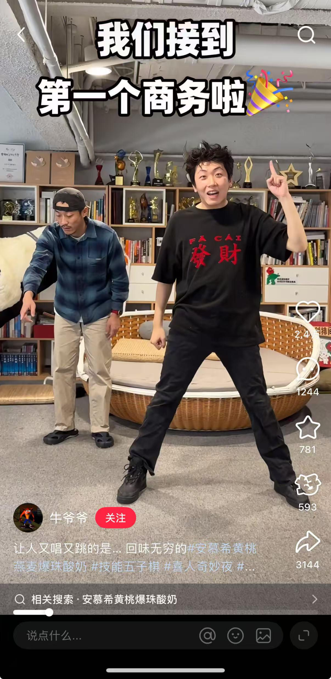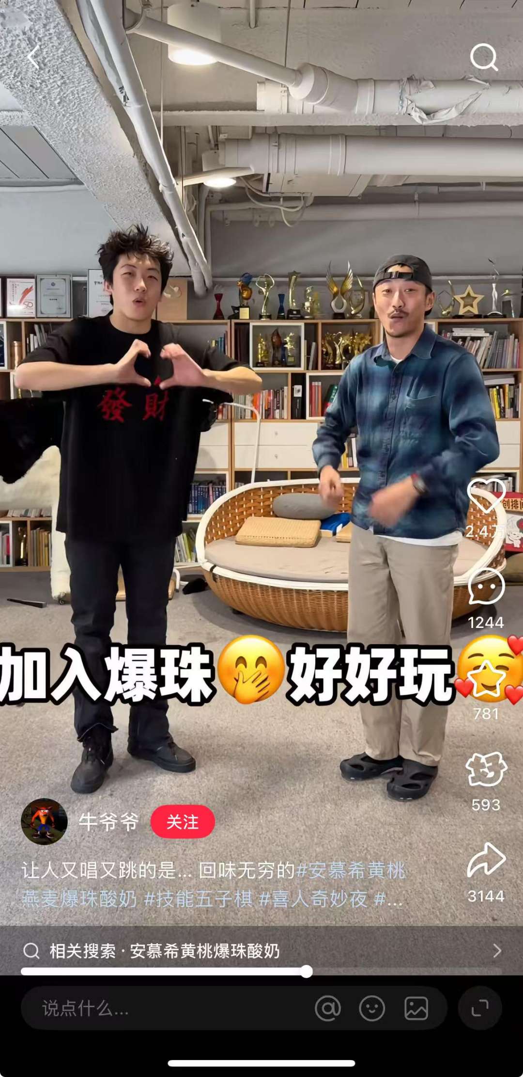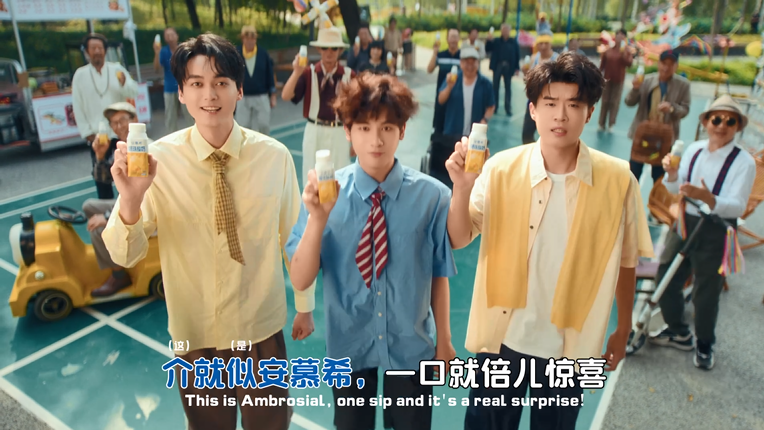 视频里最戳人的,是藏在笑料里的情绪共鸣。当胡先煦说“生活给你下套,你甭自己内耗”,天津大爷接话“做人不受累,快乐才对味”时,安慕希精准承接年轻人对乐享生活的情绪诉求,让产品成为日常放松场景的「标配」。