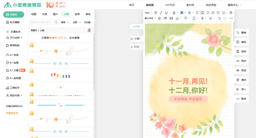 整个过程就像搭积木,不需要任何设计基础。对于新手来说,小墨鹰最大的好处就是降低了排版的启动门槛,让你能快速做出像模像样的版面,把更多精力集中在内容本身。你不妨去它的官网实际体验一下,感受会更深。