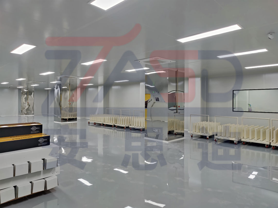 地面选材:市面流行环氧自流平,防静电却扛不住重磨,粉尘一出涂布成品率就掉;安思迪分区选材——货运通道铺耐磨不锈钢,精细区用环氧,高载区再叠高架地板,吊装与找坡让人工再涨一截。