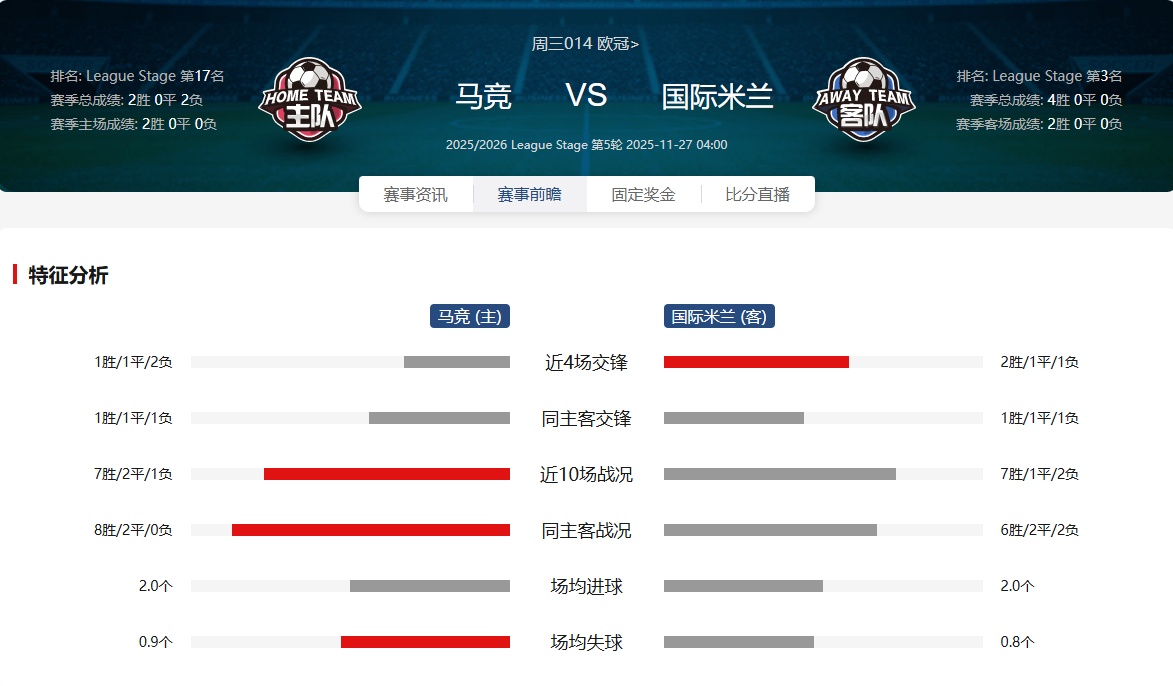 国际米兰在意甲也是劲旅,进攻火力强大,中场传球和调度能力出色,防守端球员配合默契。欧冠小组赛表现可圈可点,成功晋级淘汰赛。不过近期遭遇伤病困扰,部分主力缺阵影响战术安排。上周末意甲联赛中0 - 1输掉同城德比,四连胜势头终结,士气可能会受影响。虽然近期5个客场拿下4胜1负,客场表现不错,但队长劳塔罗·马丁内斯在强强对话中的表现受到关注,尽管他在欧冠已斩获4球。