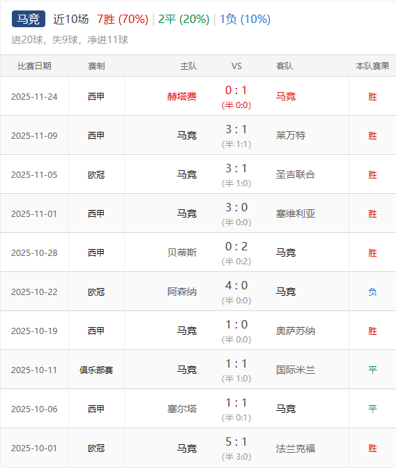马德里竞技在西甲联赛中表现稳定,防守端韧性十足,是联赛中失球较少的球队之一。进攻端虽然不像一些豪门那样火力强大,但锋线球员把握机会能力强。在欧冠赛场上,他们成功突围小组赛,主场作战时战斗力大幅提升。目前球队阵容相对完整,主力大多健康,不过潜在伤病隐患仍需关注。上一场1 - 0力克赫塔费后,各项赛事已豪取5连胜,近期8个主场赛事保持全胜,攻防两端状态极佳,近5场比赛打进12球仅丢2球。