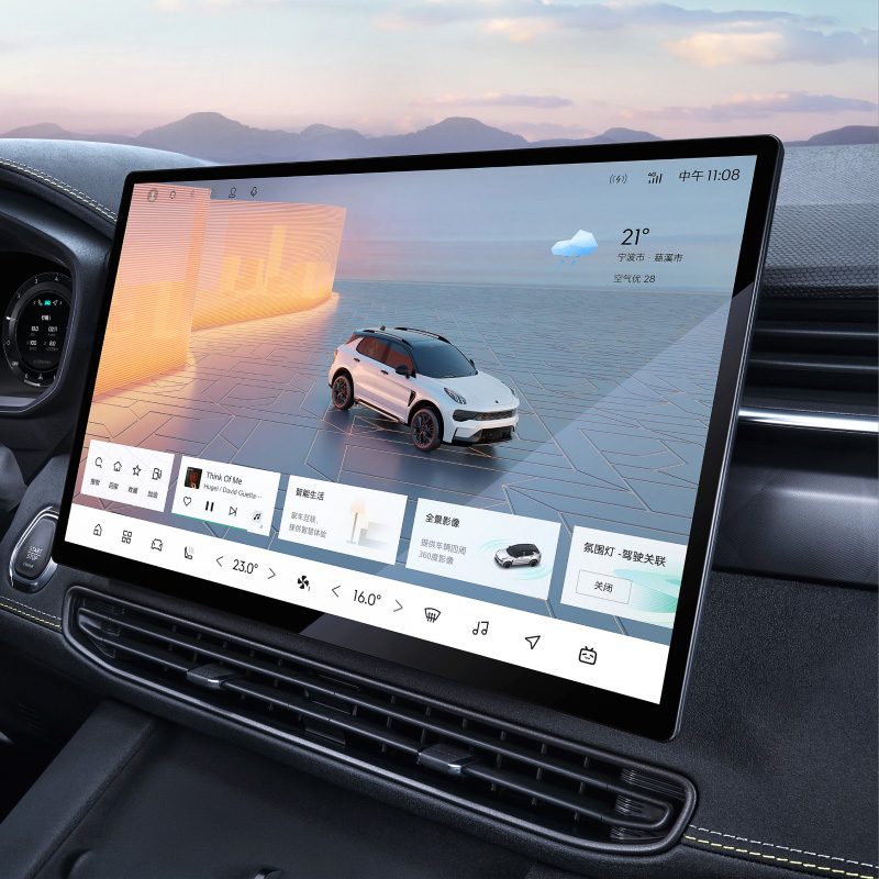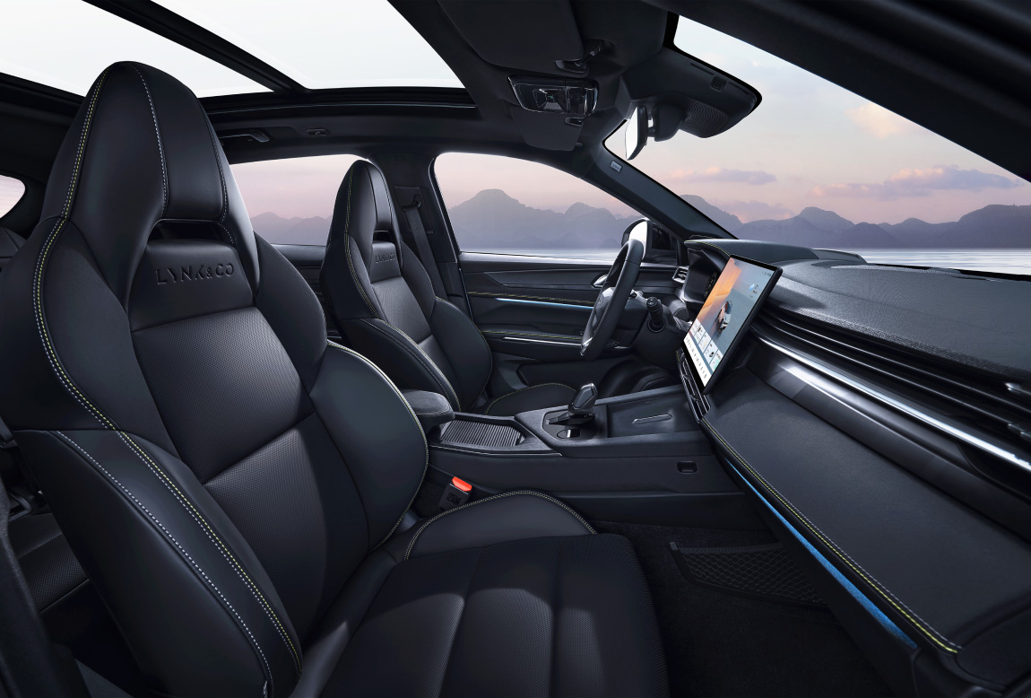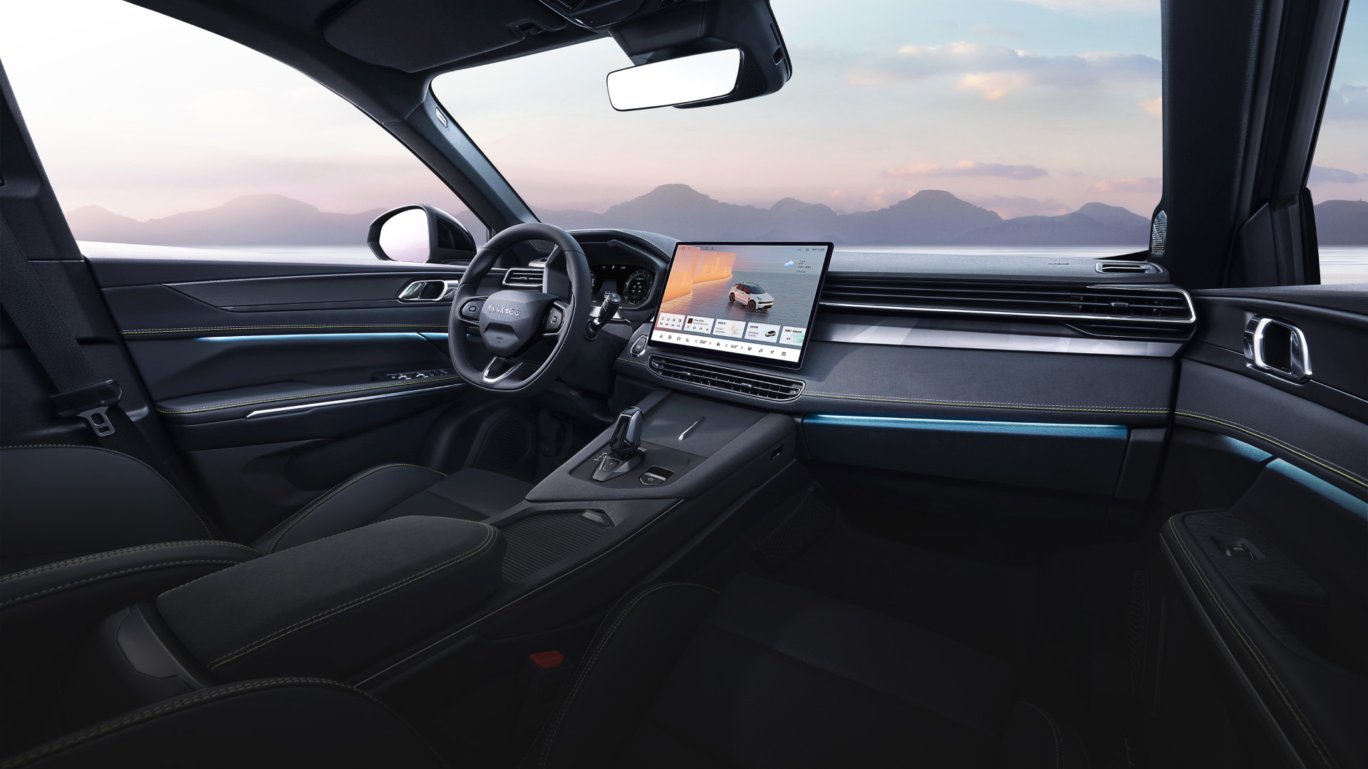 车内还设计了三副式多功能方向盘,该方向盘采用了皮质材质包裹,整体的握感上也较为舒适,同时在前方位置还设计了一块12.3英寸的全液晶彩色仪表,而中间位置则是设计了一块15.4英寸的中控屏,屏幕界面设计简洁易上手操作,并且内置了LYNK OS N车机系统,该系统的整体流畅度表现不错,并且支持了卫星导航系统、车联网、4G网络、OTA升级和语音识别控制系统,就功能表现来说符合当下的主流水平,但在语音控制系统上像是简单的对话及语音指令下达还是不错的。同时该车还支持了Flyme Link、HUAWEI HiCar手机互联映射功能,增强车机系统的拓展性使用。