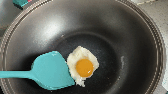 再来个无油炒鸡蛋,记得某个不粘锅的直播出了意外,粘得铲不起来。城际多用锅完全可以做到无油不粘的效果,真的很棒。