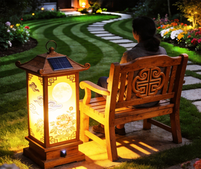 最后是小品类元素,如雕塑、灯具、座椅等。我们在庭院中设置石雕的麒麟、貔貅等瑞兽雕塑时,会选用本地石材,雕塑底部预留排水孔洞,避免积水影响周边植被生长;灯具选用宫灯造型,灯罩上绘制祥云、牡丹等图案,采用太阳能供电,夜晚点亮时光影交错,既满足照明功能,又营造出温馨吉祥的氛围;座椅采用防腐木材料,椅背雕刻如意纹、回字纹等图案,木材料取自可持续林业资源,让人们在休憩的同时感受传统文化韵味与生态友好的设计理念。