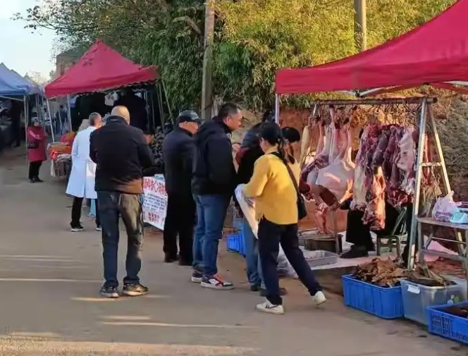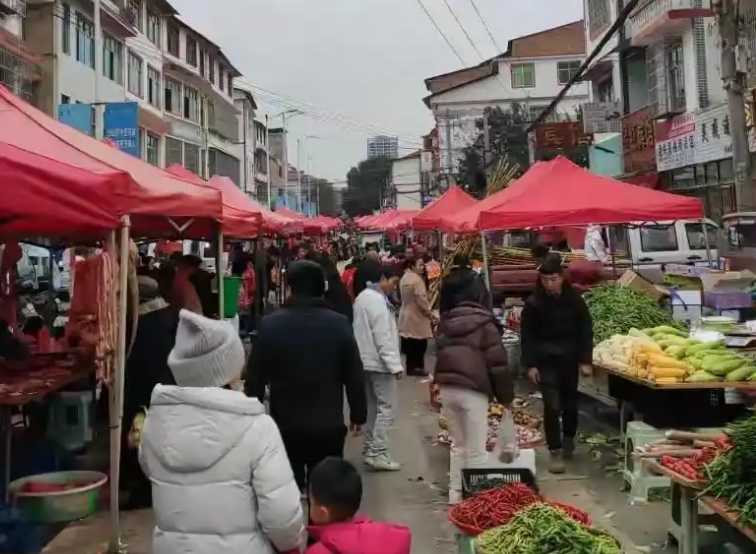 吆喝声、讨价还价声此起彼伏,摊位上的蔬菜水果、日用百货摆得满满当当,总能吸引不少村民赶来凑热闹。