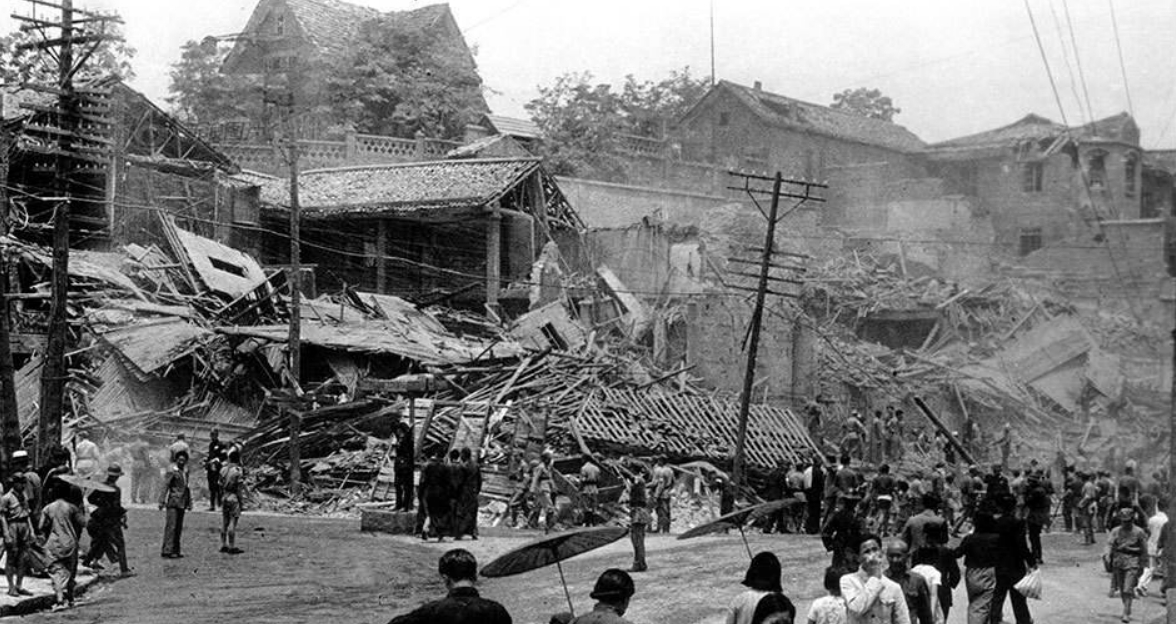 日军轰炸后的重庆城区