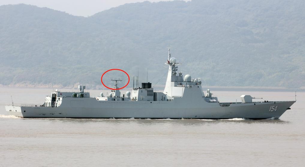 (052DG上的反隐雷达,个头很大,显得有些突兀)