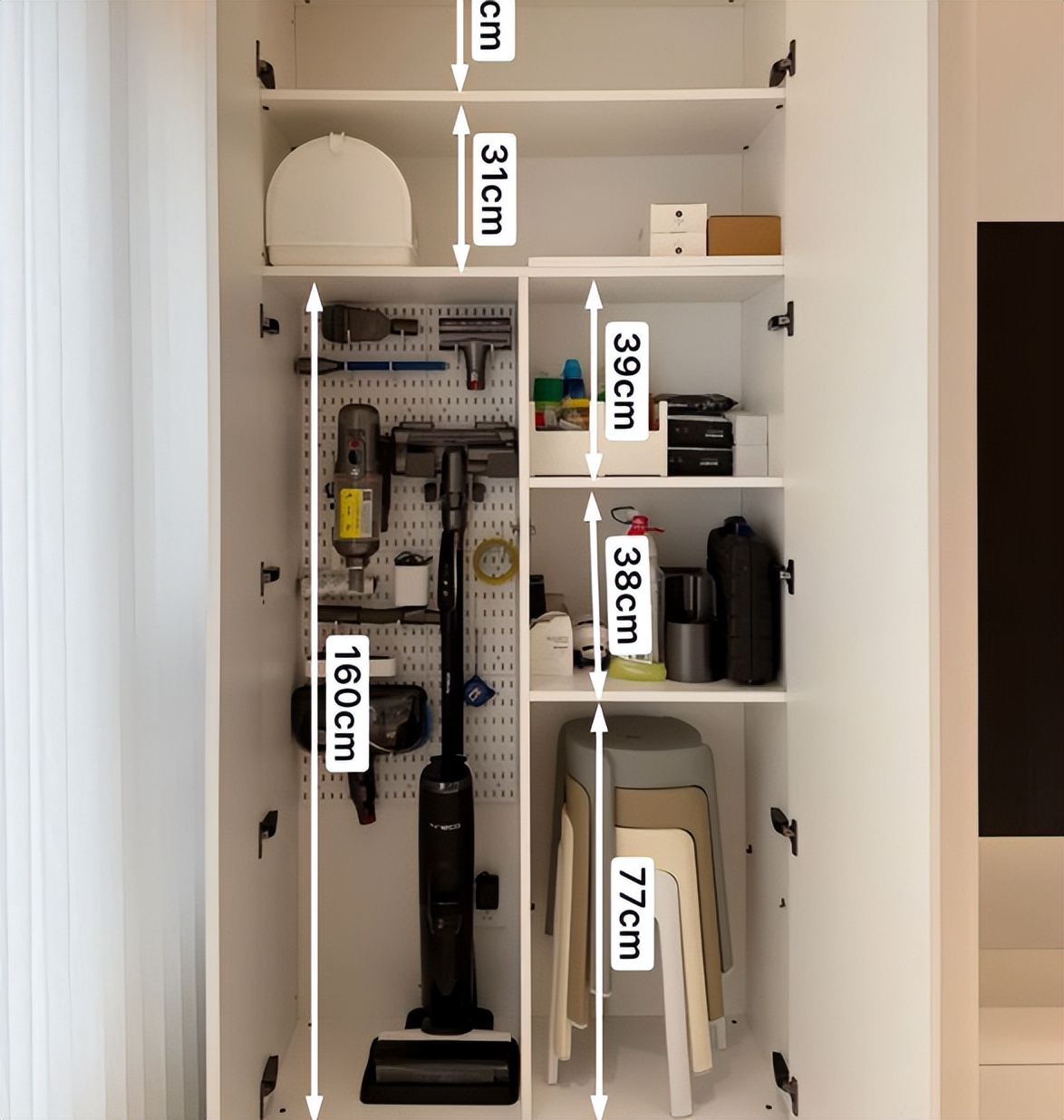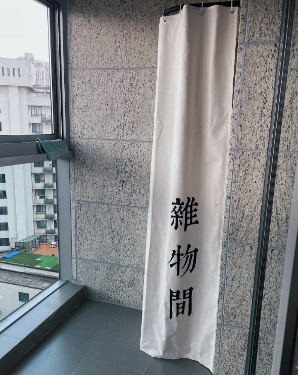 直接在阳台打一个家政柜,这些物品,全都可以塞进柜子里面,柜门一关,就什么都看不见了。