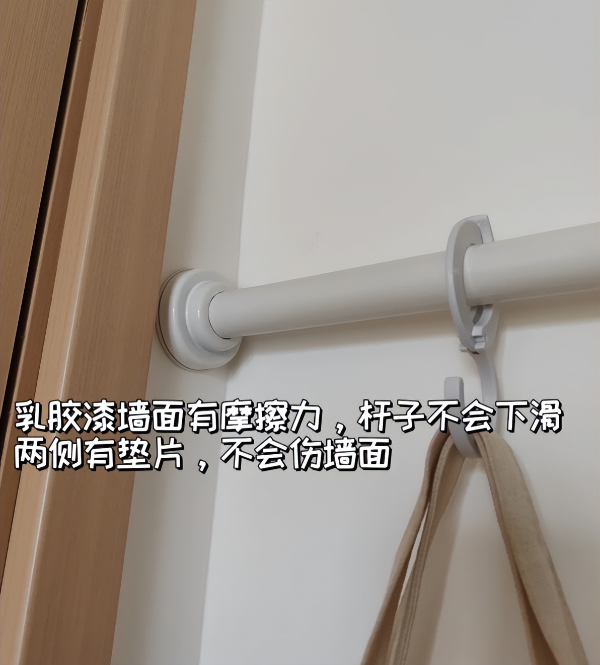 因为乳胶漆墙面有摩擦力,所以杆子不会往下滑。