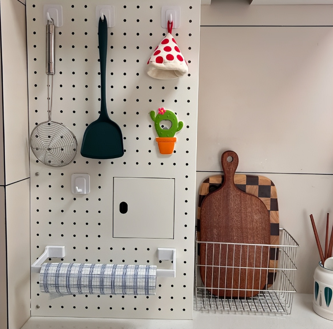 既然燃气管不可以完全封起来,那么只需要用到洞洞板,这不就搞定了吗?