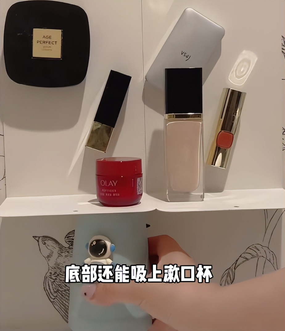 再把平时用的化妆品后面贴一个磁吸贴,化妆品就可以无痛上墙收纳了。