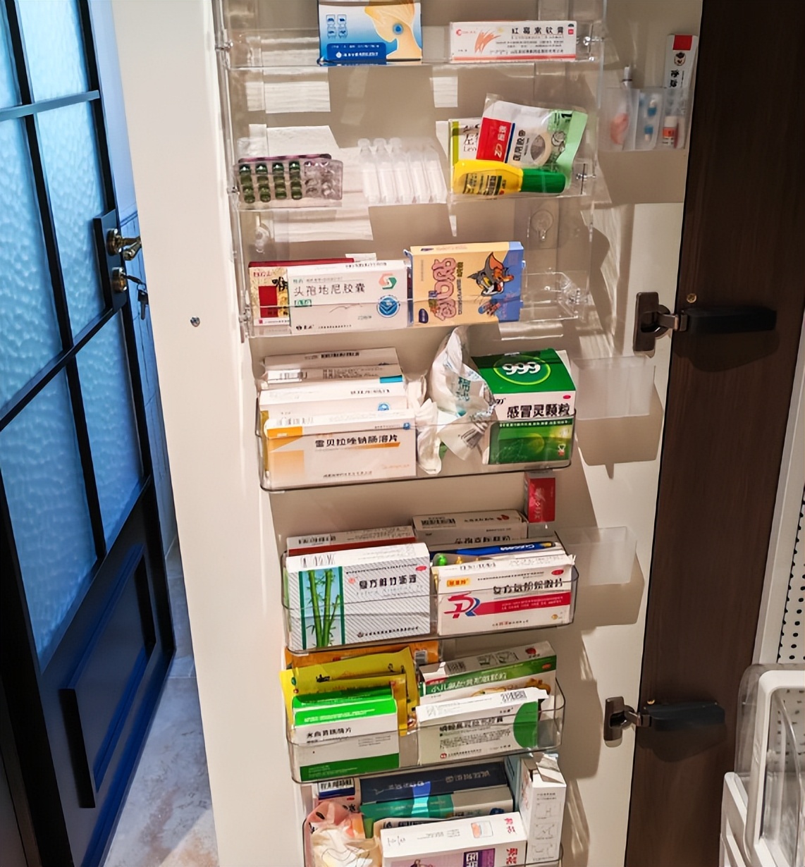 把它粘贴在柜门后面,平时用来收纳药品、药膏刚刚好,一目了然,找起来也方便。