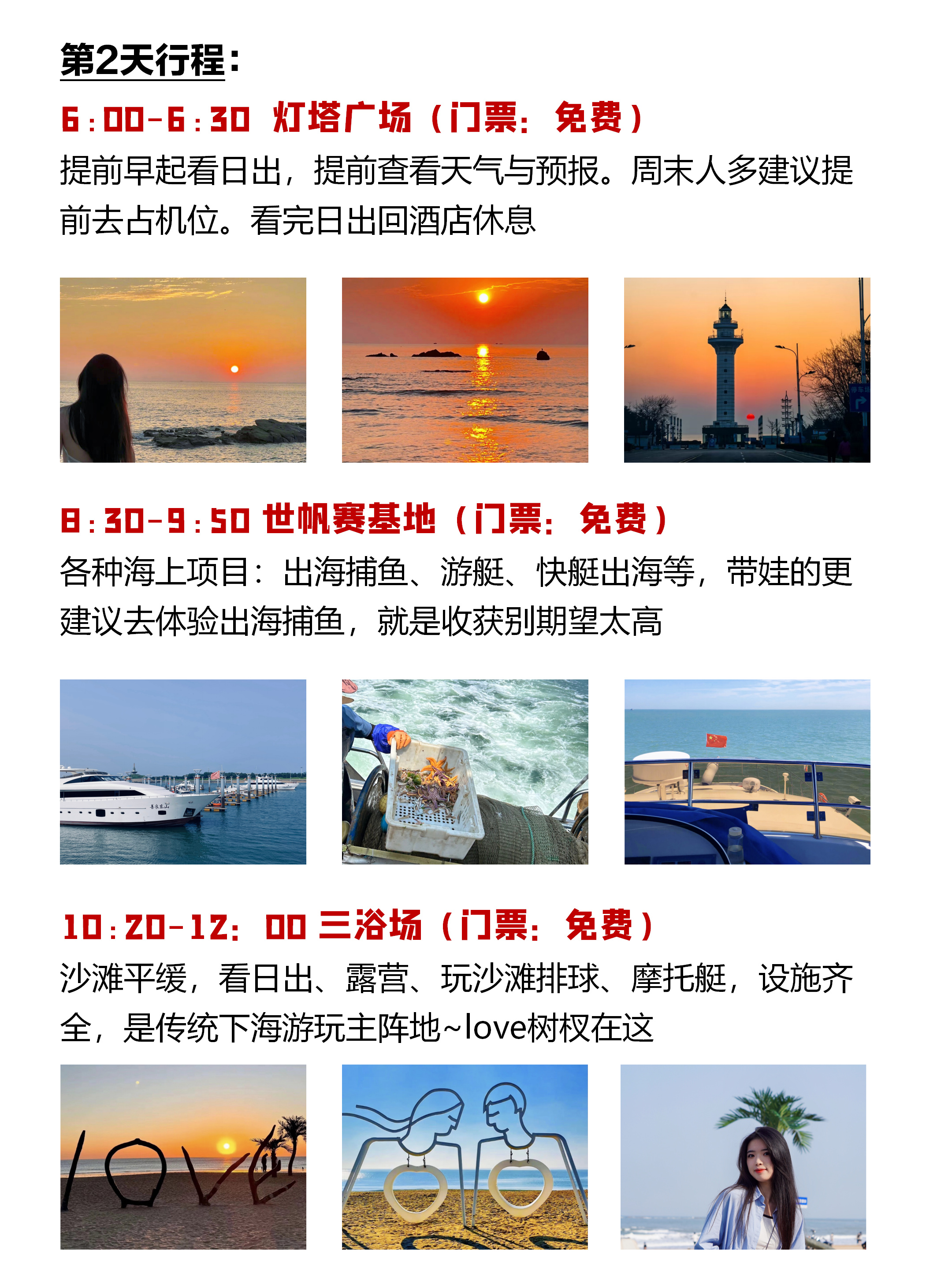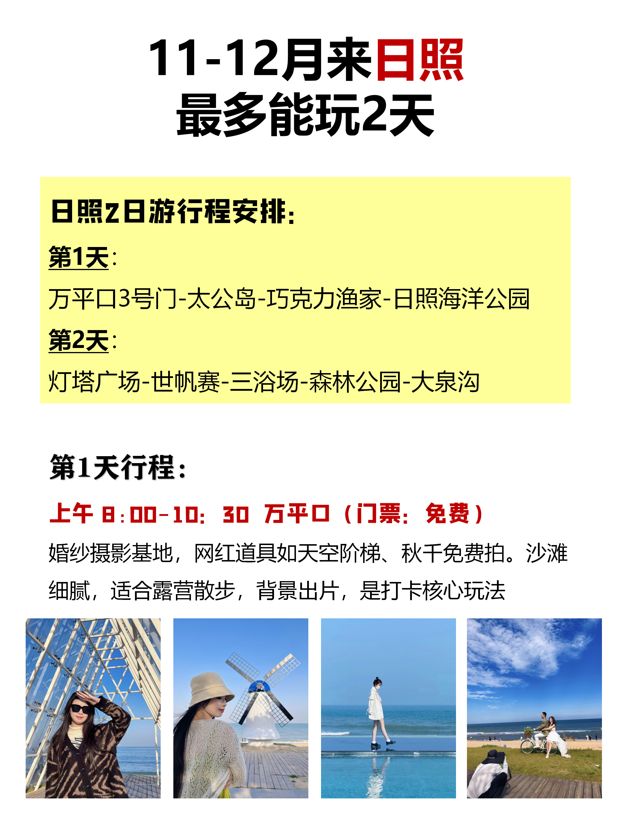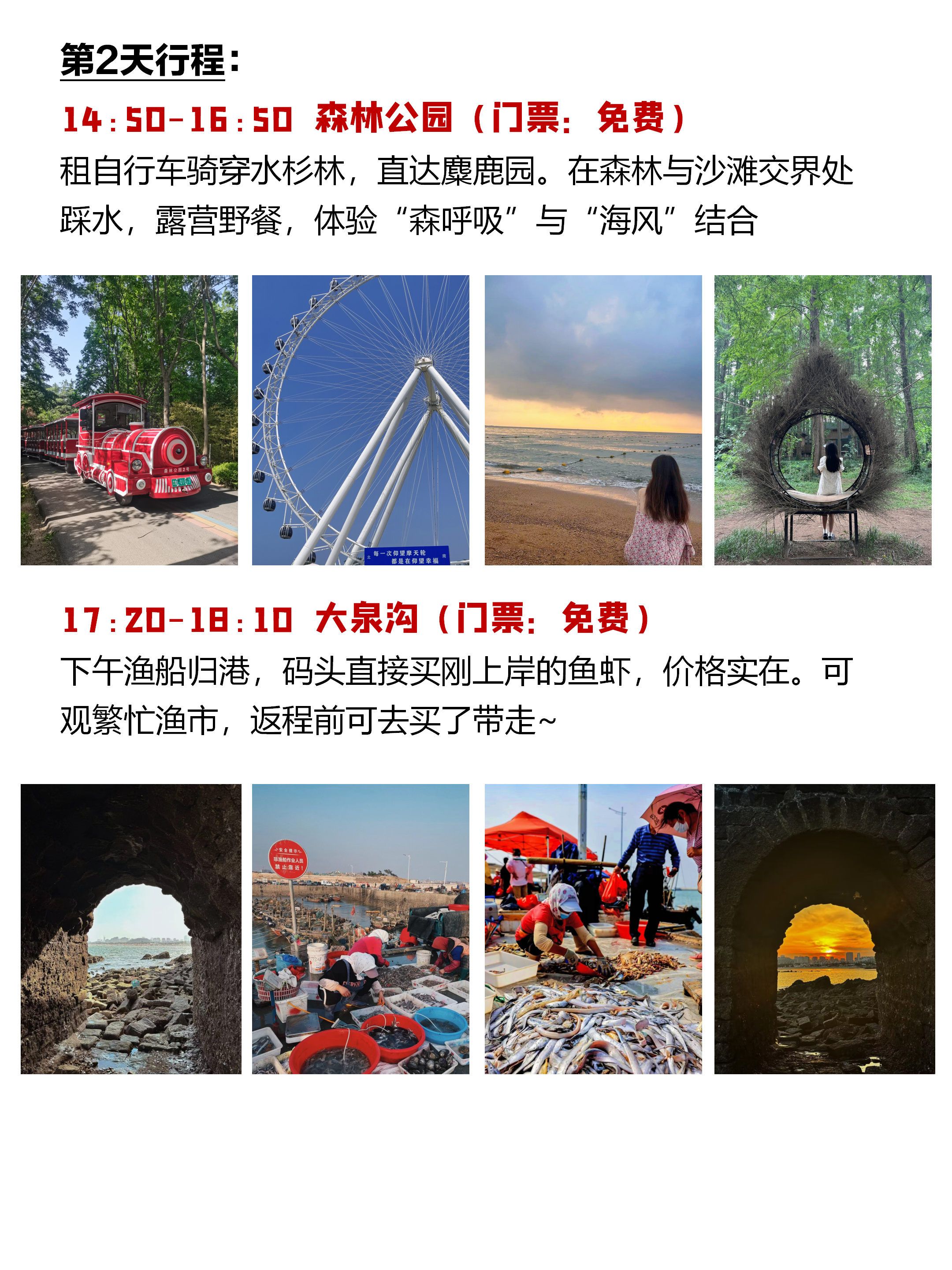 上午:威海公园(打卡“画中画”相框)→ 悦海公园(灯塔与海草房取景)
