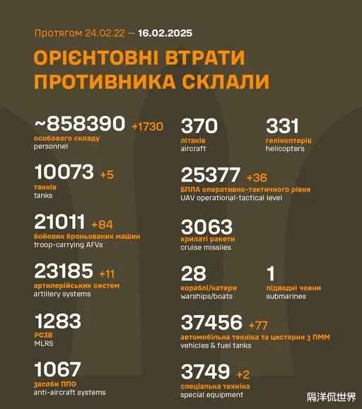 2、2 月 15 日,乌军和俄军在接触线上共搞了261次战斗冲突。仅在波克罗夫斯克地区,乌克兰军队就成功击退了 71 次俄军发动的袭击。
