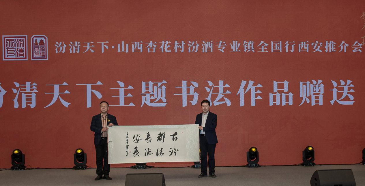 推介会上,汾阳市代表上台接受“汾清天下”主题书法和书画作品赠送。现场洋溢着热烈而鲜活的气氛,当长安文化的多元底蕴与厚重风骨,邂逅汾阳清香的清雅甘洌与醇厚风味,二者便在此处交融共生,成就一段味觉与文脉的对话。
