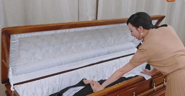 接着啊,听到老公说要在棺材里躺10分钟的时候,胡静心里可就紧张起来了。她特别担心棺材盖盖上之后,老公会缺氧呢。于是就坚决要求只能躺3秒钟。等到礼仪允许了,朱兆祥就像个听话的孩子一样,不动声色地躺进了棺材。