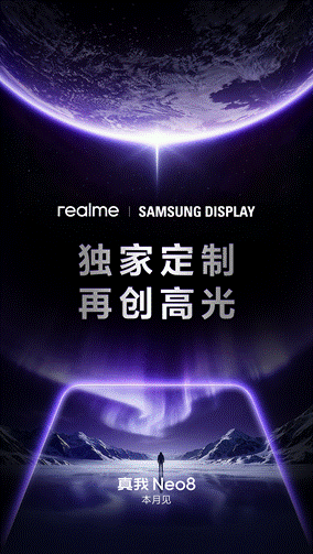 DoNews1月6日消息,真我开年越级大作真我Neo8现已官宣本月发布,新的一年开启无限可能。在确认搭载第五代骁龙8旗舰芯的基础上,真我Neo8今日正式官宣携手三星显示,带来独家定制三星屏。